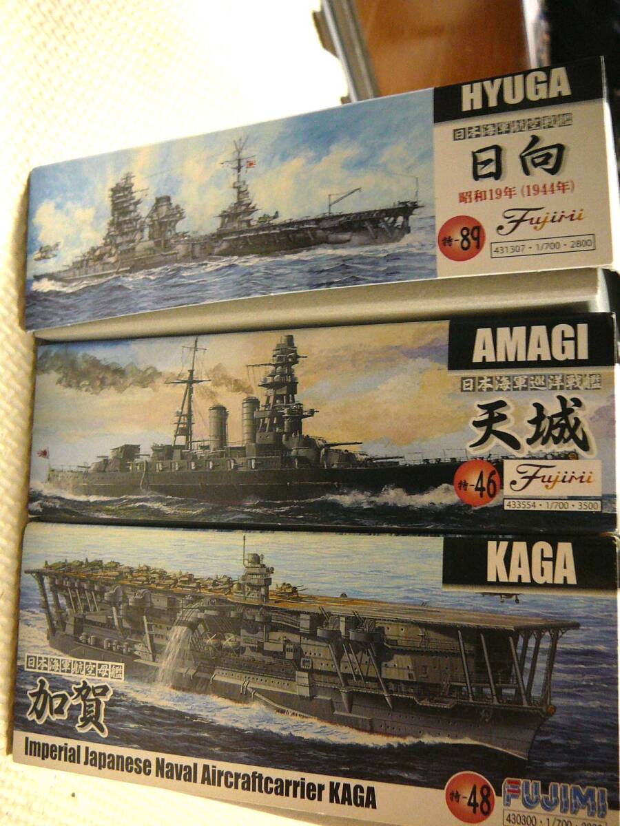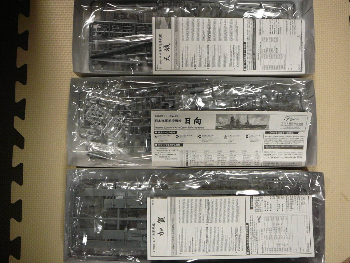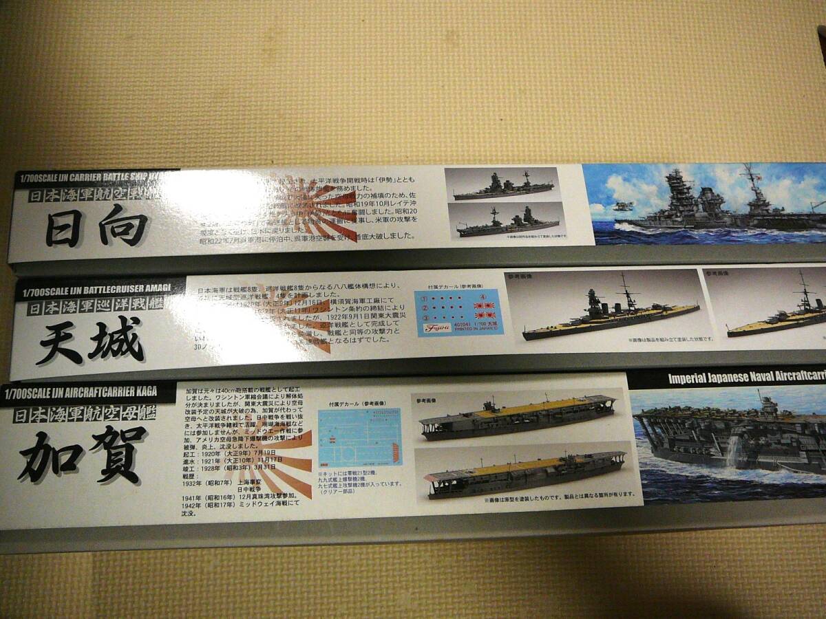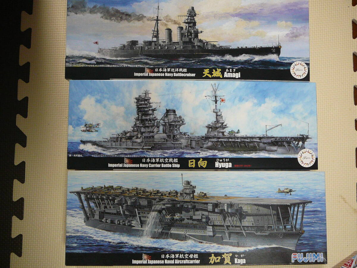 フジミ1/700特 空母加賀、航空戦艦日向、巡洋戦艦天城の3隻セットです。