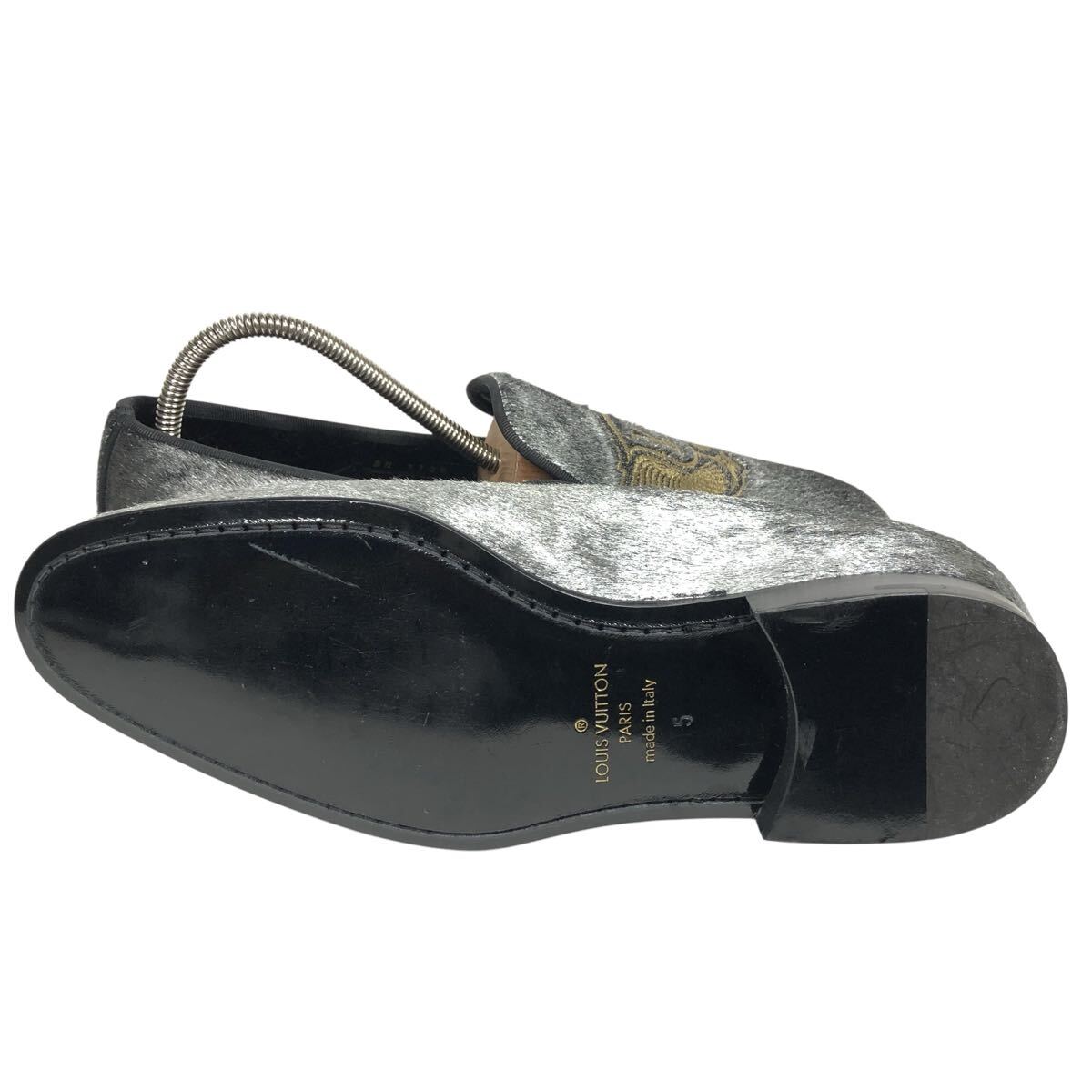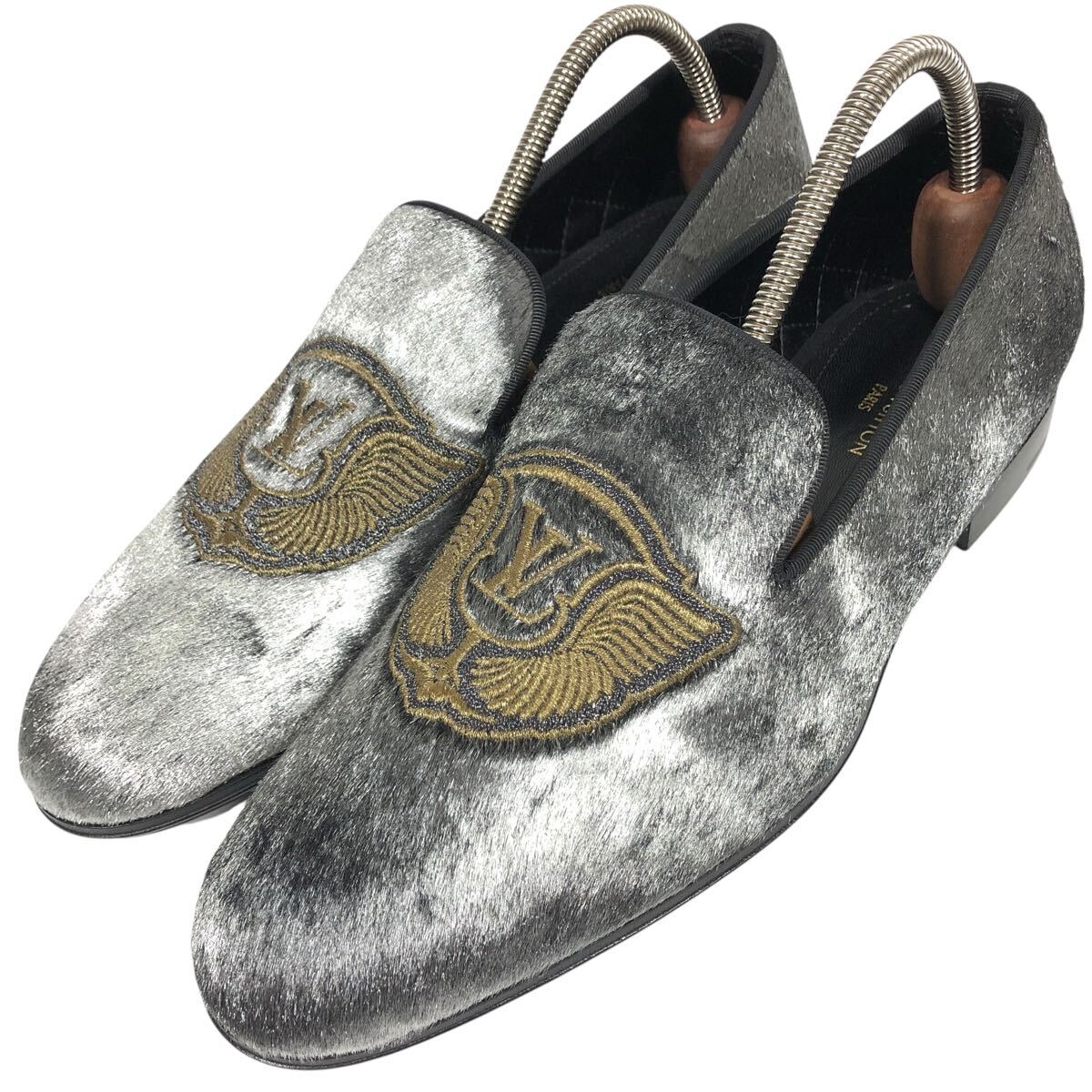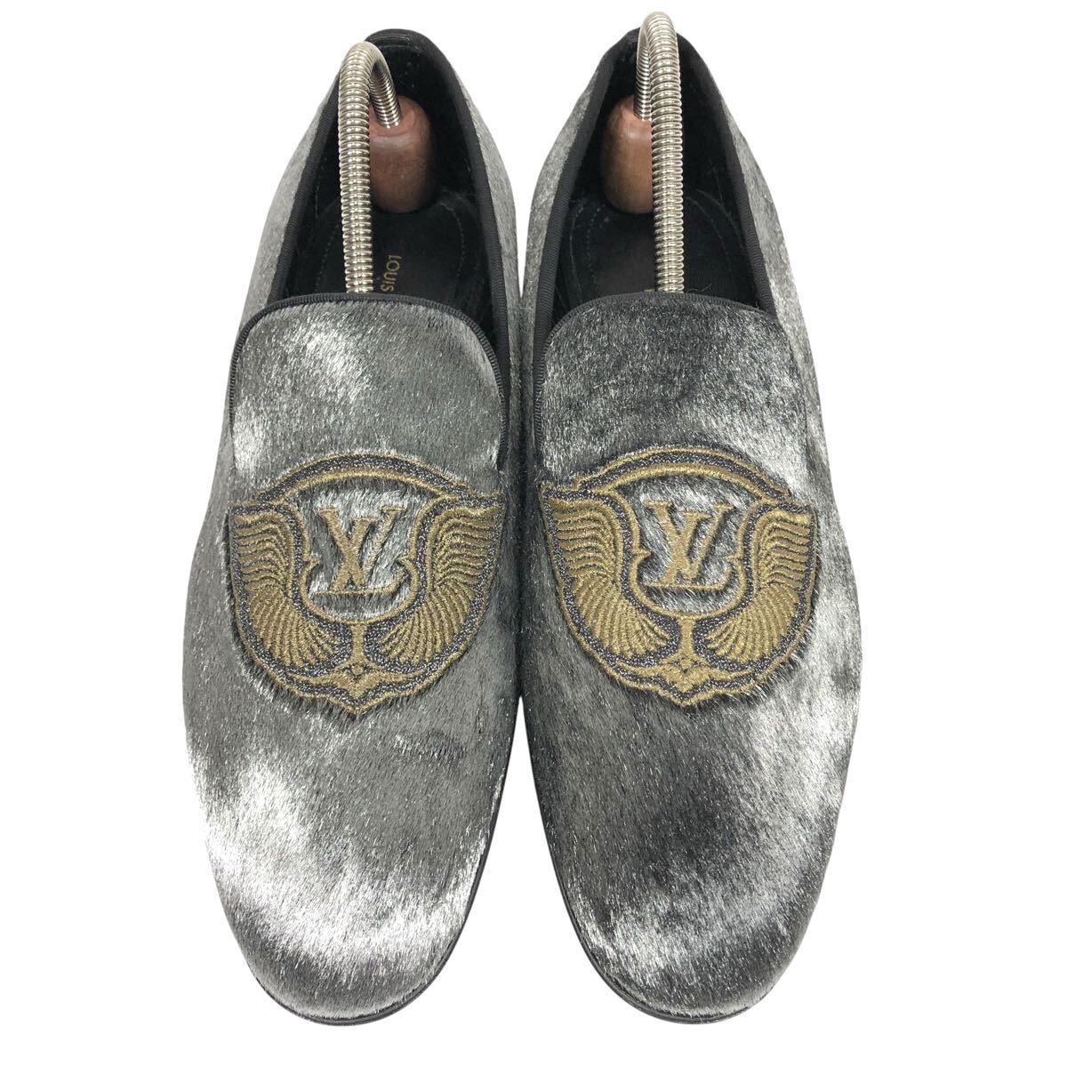 未使用【ルイヴィトン】本物 LOUIS VUITTON 靴 24.5cm オートゥイユライン LVロゴ刺繍 ローファー オペラシューズ ハラコ メンズ 伊製 5 L