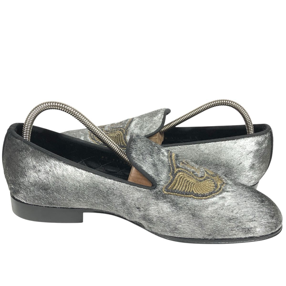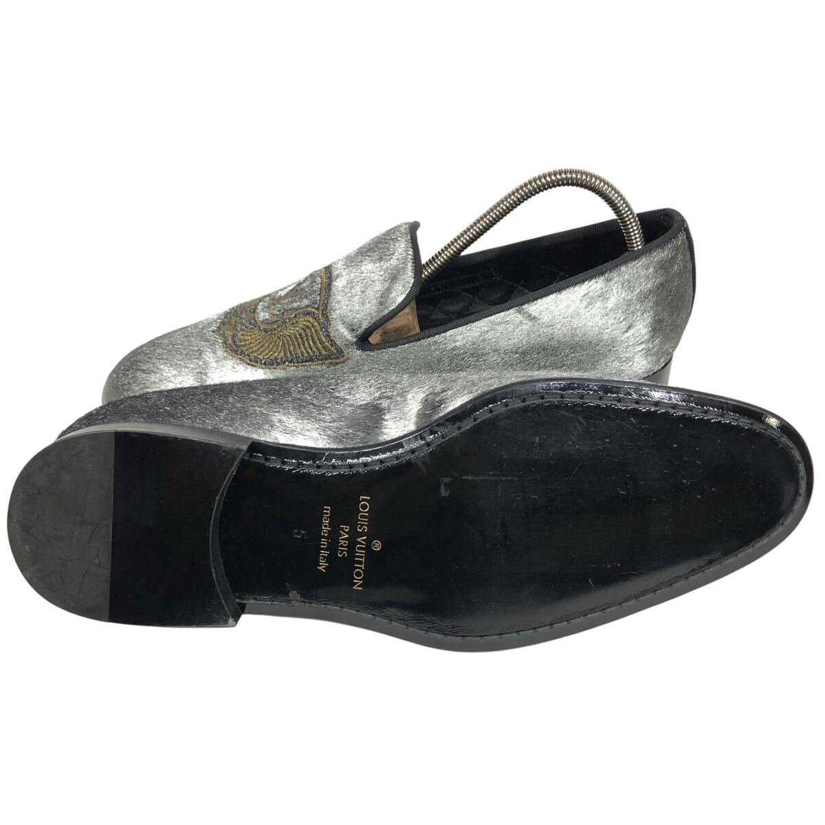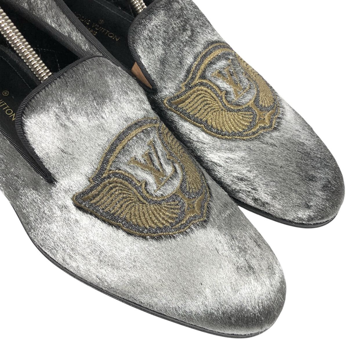 未使用【ルイヴィトン】本物 LOUIS VUITTON 靴 24.5cm オートゥイユライン LVロゴ刺繍 ローファー オペラシューズ ハラコ メンズ 伊製 5 L