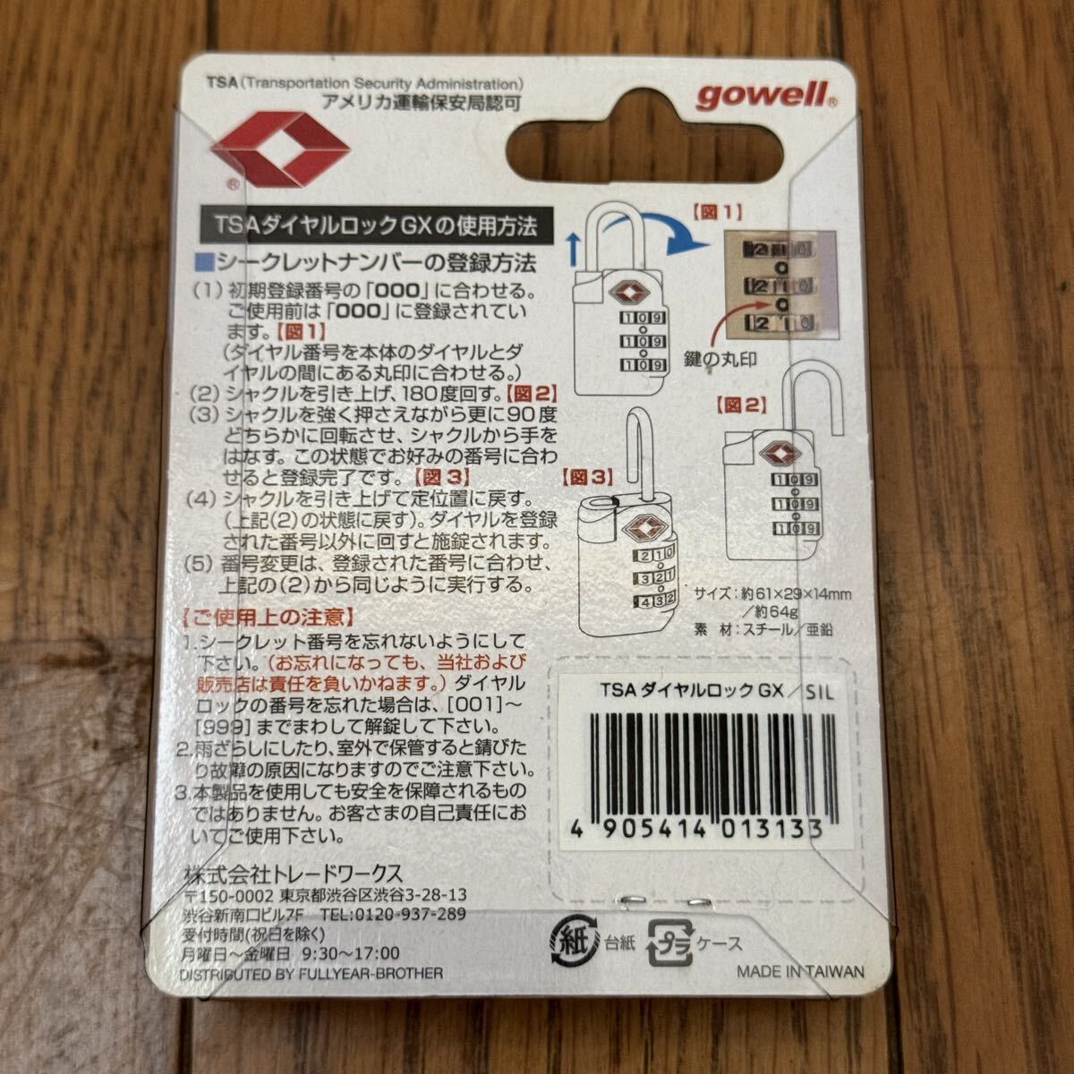 【新品】gowell TSA Dial Lock GX/SIL ダイヤルロック 3桁