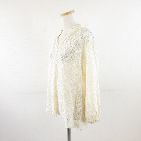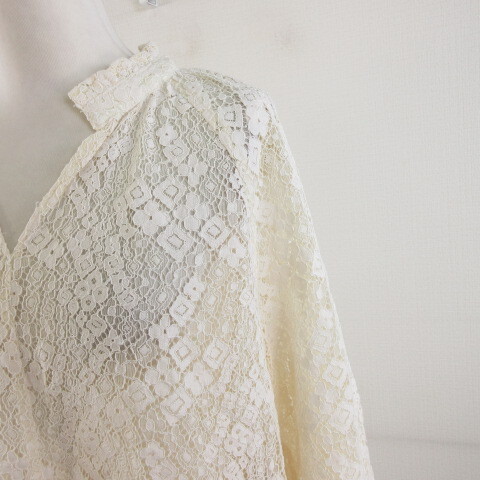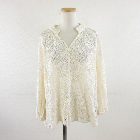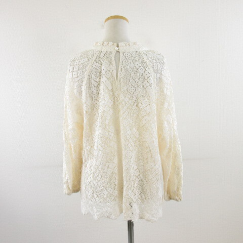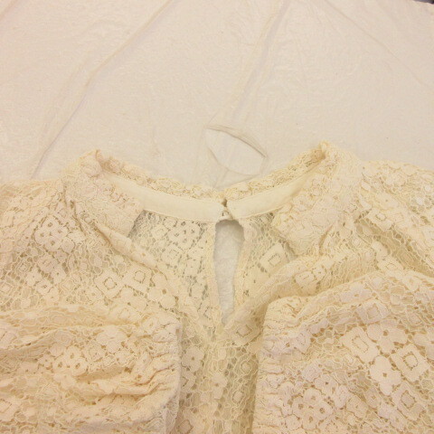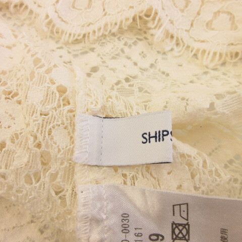シップス SHIPS any レースブラウス カットソー キーネック 長袖 オフホワイト 白 99 *A988 レディース