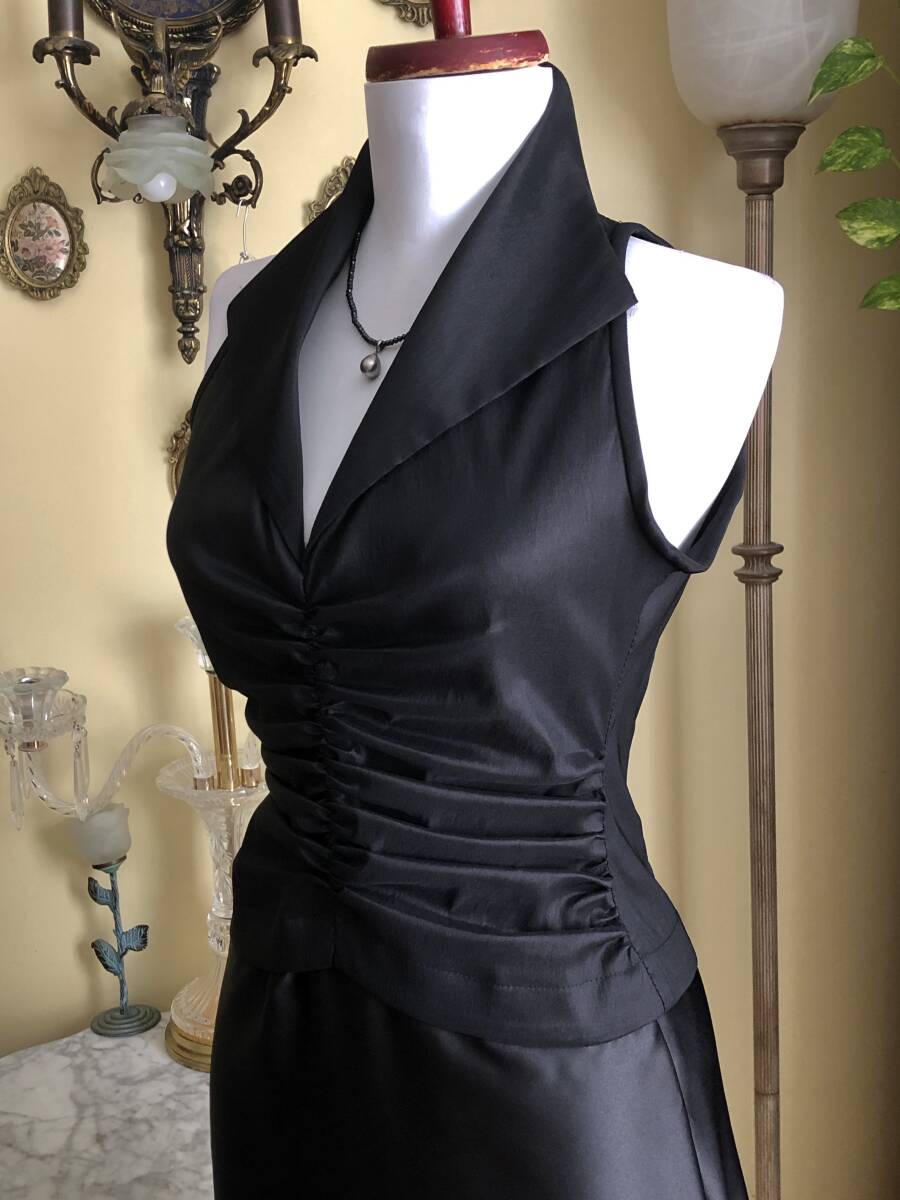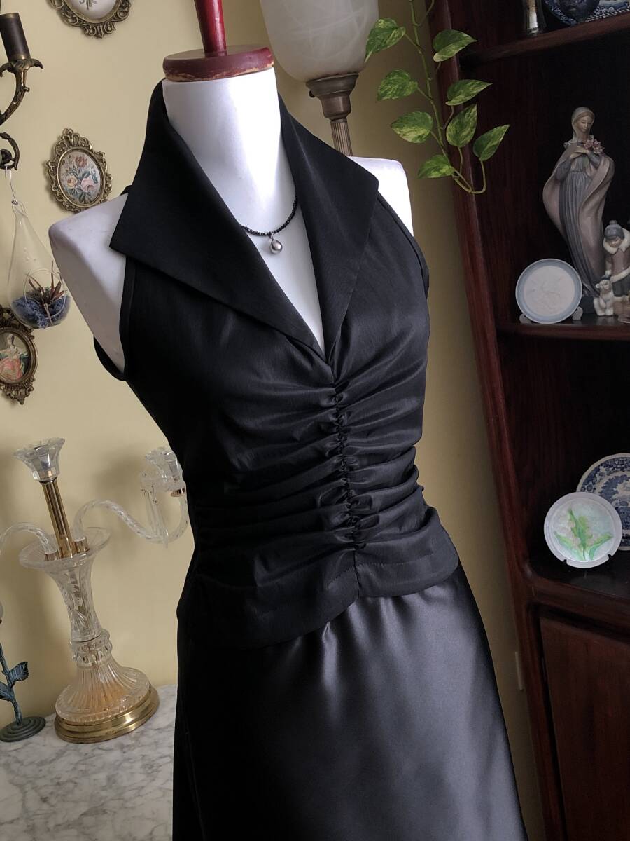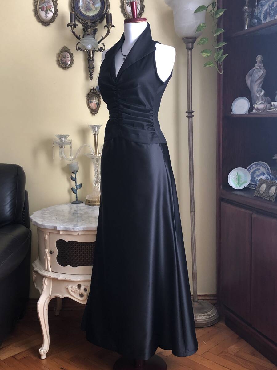 【状態】中古 新品に近い大変綺麗なお品です。 【ブランド】TADASHI SHOJI 【サイズ】表示サイズ/us(アメリカ)2p 日本対応サイズ目安/ 9号Sサイズぐらい *個人差がございます。必ず採寸をご参照ください。 【採寸】平置き採寸です。 肩幅24cm、身幅42㎝、ウエスト34cm、着丈143cm(上身丈45cm+スカート丈98cm) *ストレッチします 【カラー】黒 【素材】レーヨン62%、ポリエステル32%、ライクラ6% 【裏地の素材】なし 【着脱】後ファスナー |