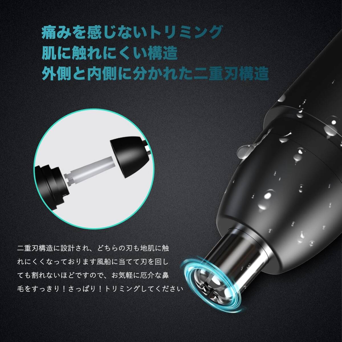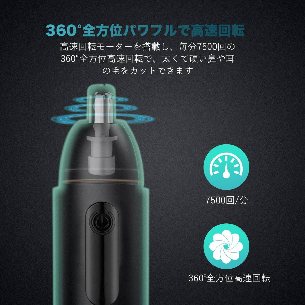 • 【高速モーター&安全設計刃】 鼻毛カッターは メンズは良質な精密ステンレス鋼刃と良質な構造を採用し、両刃360°回転システムを内蔵し、滑らかなシェービング効菓を提供し、苦痛と不快な引っ張りがない。人間工学に考えれた安全な外刃設計と360°回転のデュアルエッジ刃で肌に優しくて安心です。駆動も安定し、安全性も高いし、無駄毛を効率的にカットでき、毎朝の身だしなみをスピーディーに仕上げます。