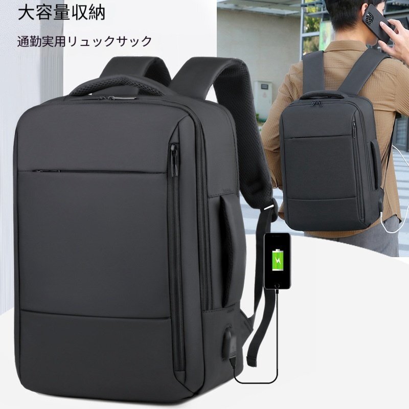 ビジネスリュック 大容量 防水 ビジネスバッグ リュック 3way 耐衝撃 防汚性 通気性 USB充電ポート 止水ファスナー BG07グレー