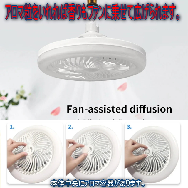 LEDシーリングファン付ライトBIG リモコン付 口金E26照明器具 LEDライト アロマ機能付 扇風機 サーキュレーター 色温度&風量調整 角度自在
