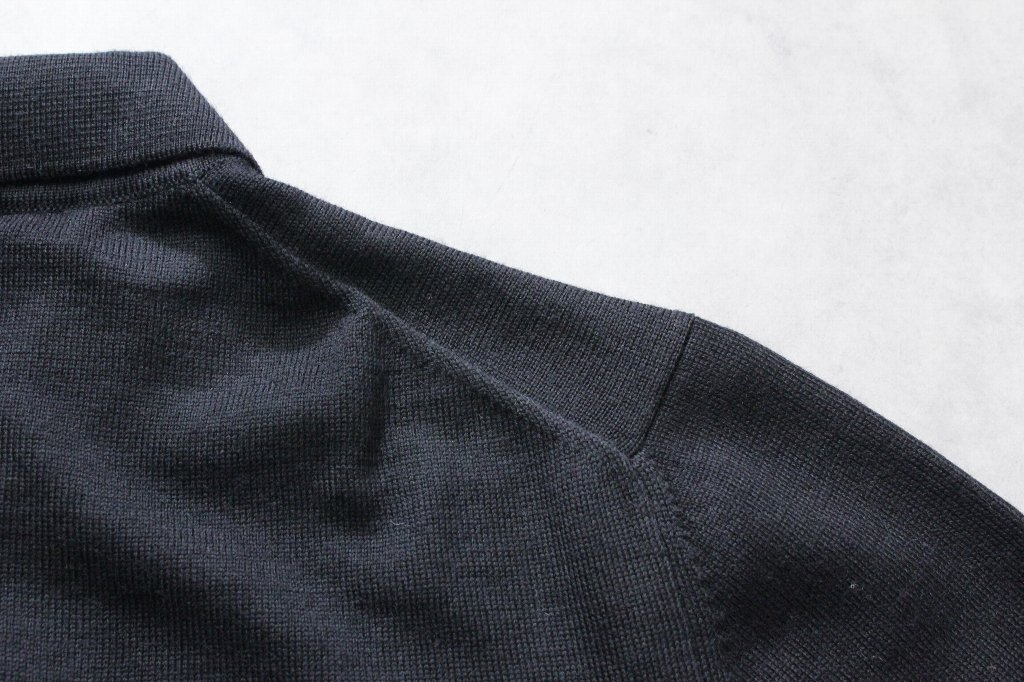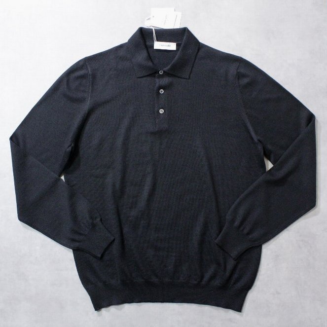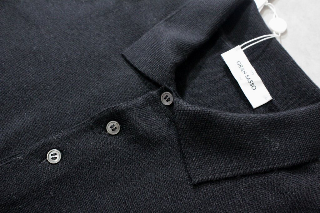 GRAN SASSO★新品3.9万円 グランサッソ 定番12ゲージEXファインメリノウール長袖ポロ 52 ブラック無地