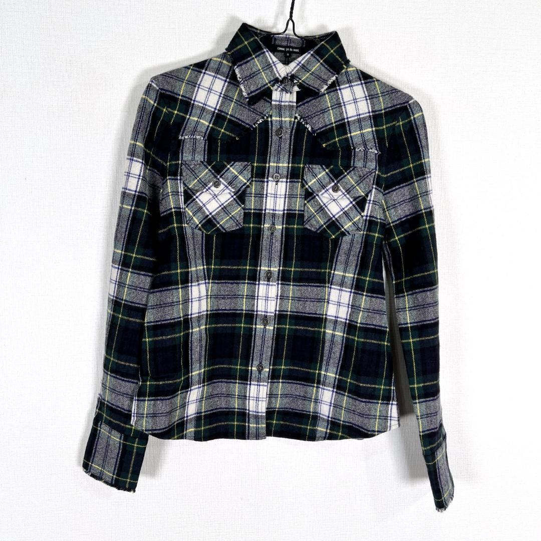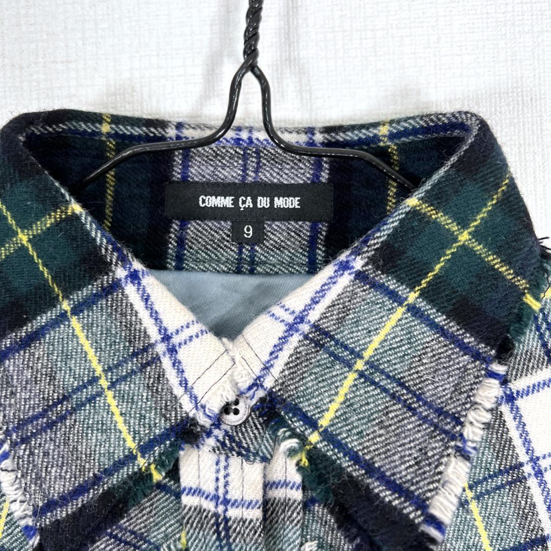【COMME CA DU MODE】コムサデモード グリーン系 チェック フランネルシャツ ブラウス 女性用 レディース 9号【a026】