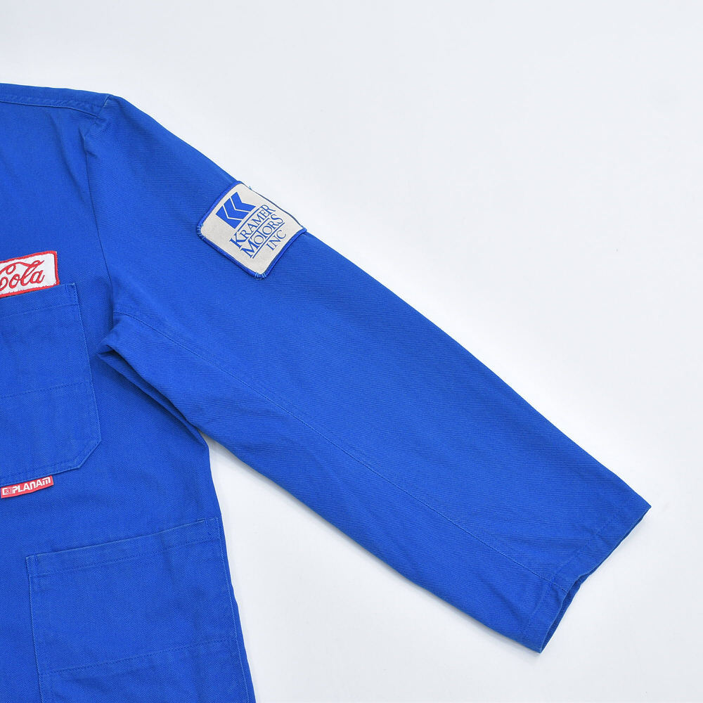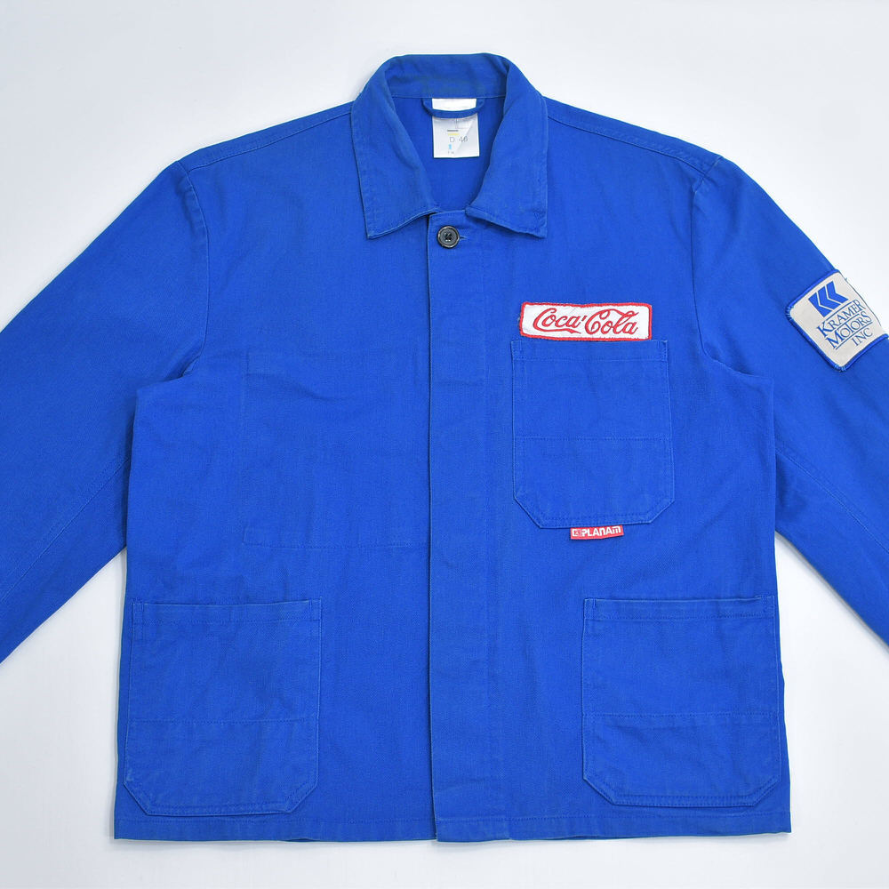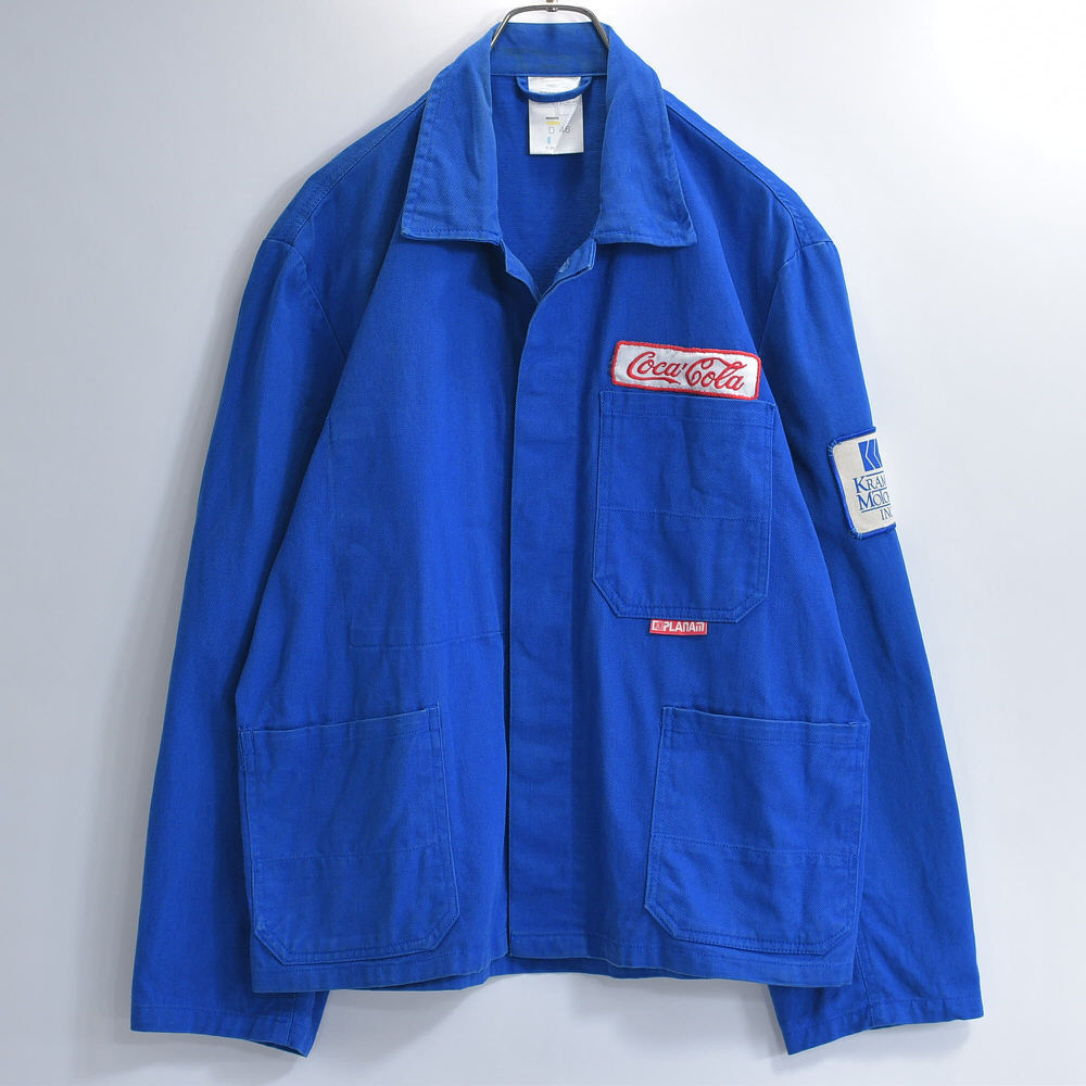 80~90s PLANAM プラナム ライトオンス ユーロワークジャケット カバーオール 企業ロゴ コットンツイル ブルー ジャーマンヴィンテージ ビンテージ ヨーロッパ古着 メンズL相当