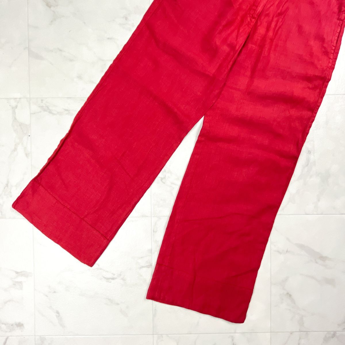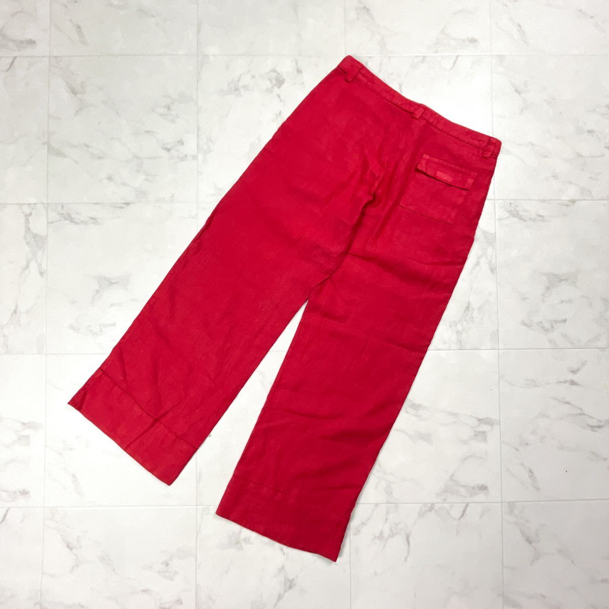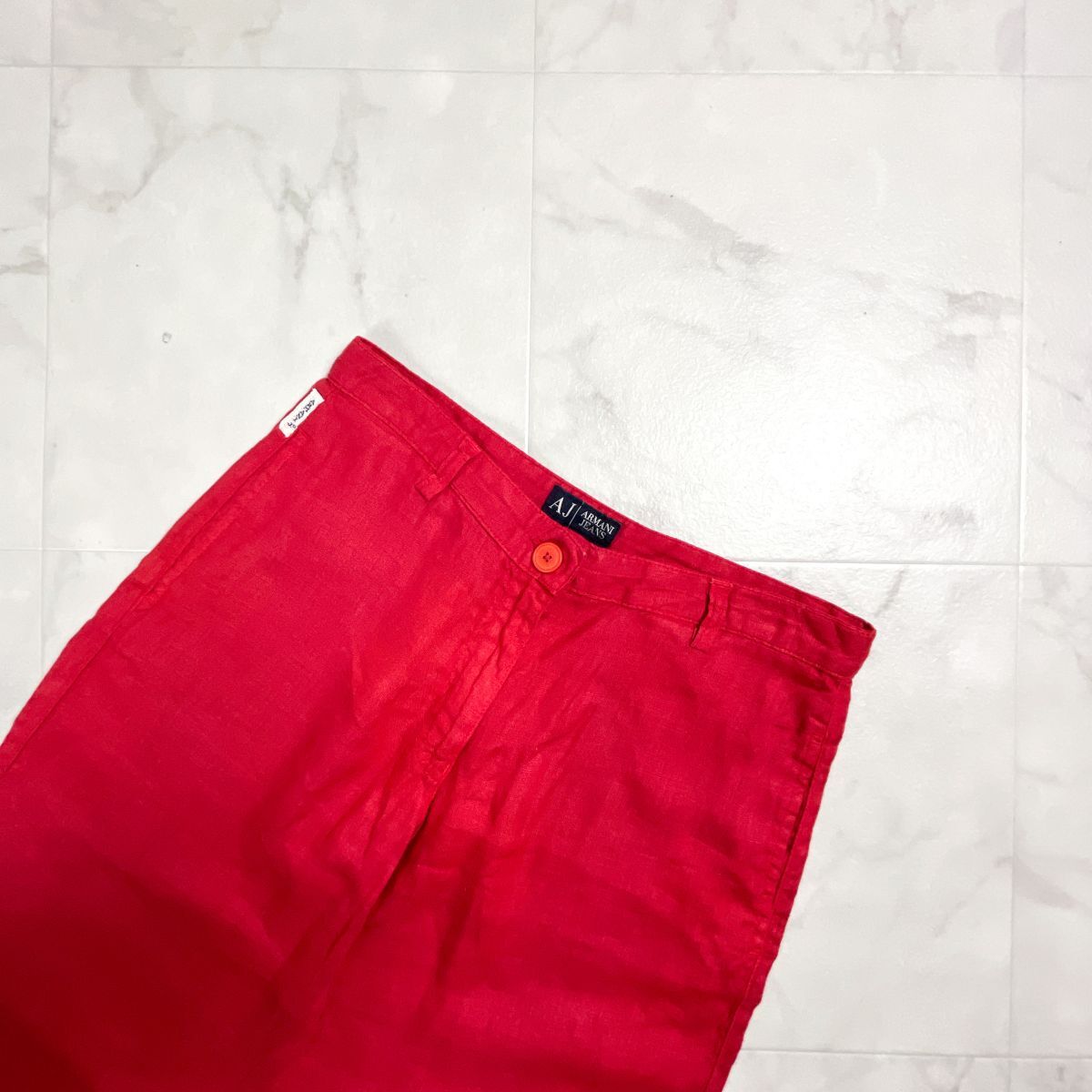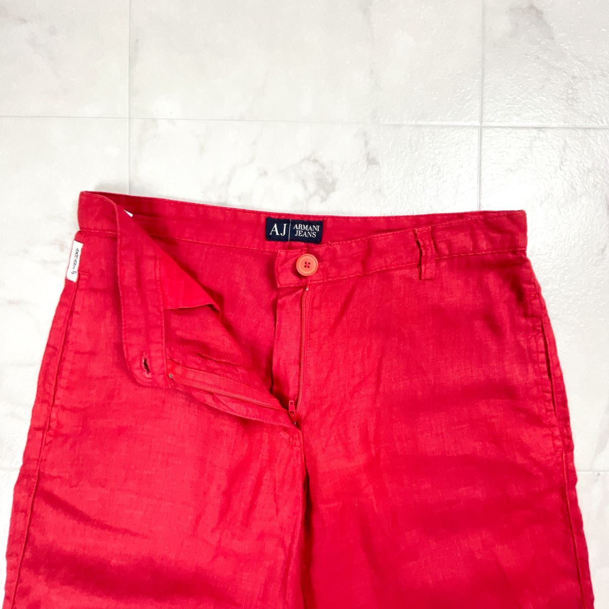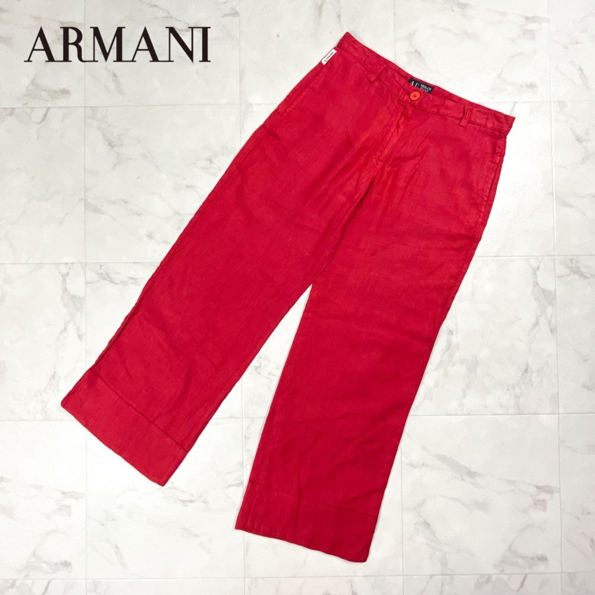 美品 ARMANI JEANS アルマーニジーンズ リネンスラックス クロップドパンツ セミワイド レディース 赤 レッド サイズ38*HD243