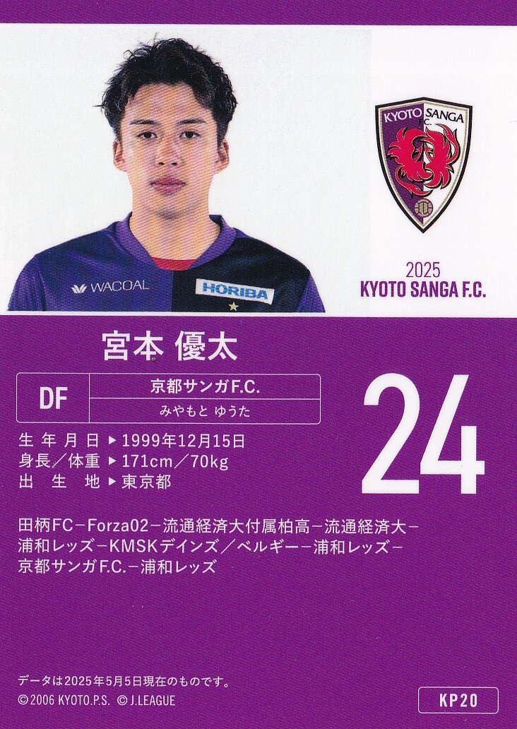京都サンガFC 2025 オフィシャル KP20 宮本優太