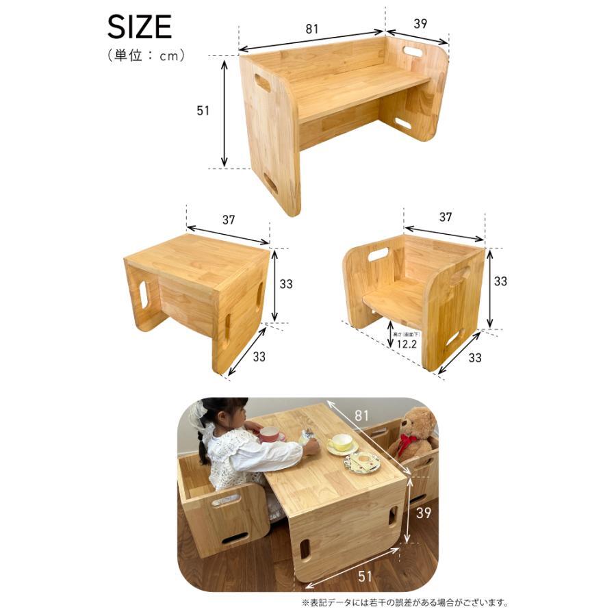 360°キッズデスク 3点セット チェア2個&デスク 5way キッズテーブル キッズチェア 学習机 お絵描き チェアセット 木製 YT-DESK01-WD