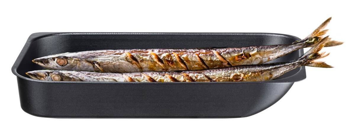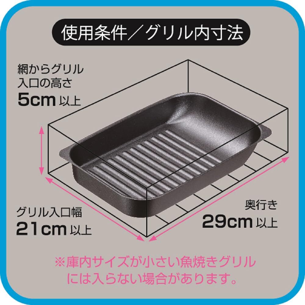 説明 ●グリルを汚さず美味しく調理できます。 ●片側をゆるやかな底にすることで、さんまを切らずにそのまま焼けます。 ●冷凍餃子が12ケ並べて調理できます。 ●8種類のレシピ付き。 ●サビにくく、焦げ付きにくい、シリコン樹脂コーティング。 ●魚焼きグリル、電磁調理器、オーブントースター、ガス火、食器洗い洗浄機にご使用できます。 ●ご使用上の注意。 ●庫内サイズが小さい魚焼きグリルには入らない場合があります。 ●グリル火力は弱火から中火でご使用ください。庫内が狭いので強火でのご使用は必要ありません。 ●揚げ物料理には使用できません。 ●電子レンジでのご使用はできません。 ●調理中・調理後は本体が非常に高温になります。取り出す際は厚手のミトンなどを必ず使用し、やけどには十分注意してください。 ●200V電磁調理器をご使用の際は、急激な加熱を避け、火力は中程度でご使用ください。 ●食材に含まれるミネラル分が鉄分と化合して黒く変色する事があります。(人体に影響はありません。) ●使用後のお手入れ。 ●スポンジに中性洗剤をつけよく洗い、水気を十分に拭き取り弱火で空焼きし、食用油を薄く引きキッチンペーパー等で軽く拭いて保管してください。(錆止め効果) ●焦げ付き等を落とす際鋭利なものは、使用しないでください。 ●換気に注意してください。 ●調理中は必ず換気扇を回したり、窓を開けたりするなど、充分な換気を行ってください。不完全燃焼によって一酸化中毒の原因になります。