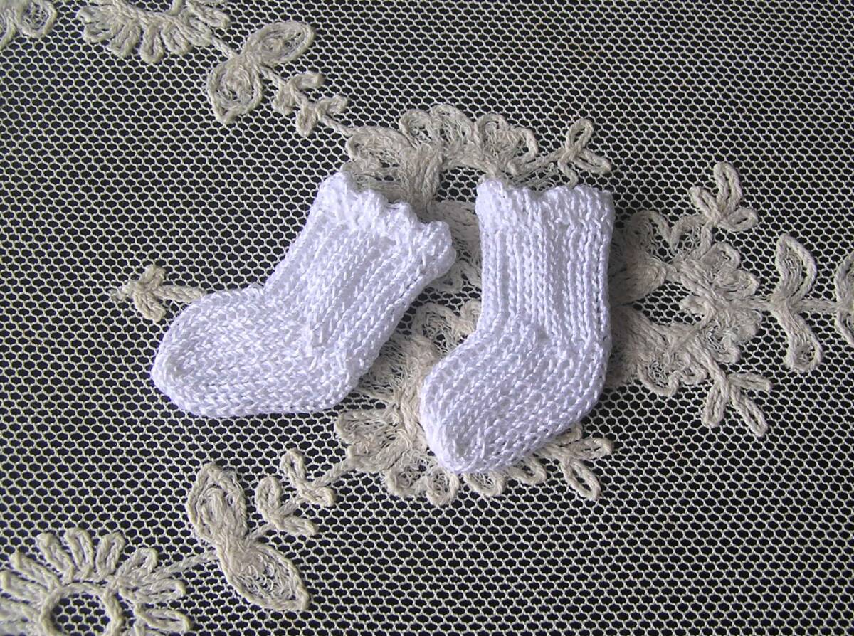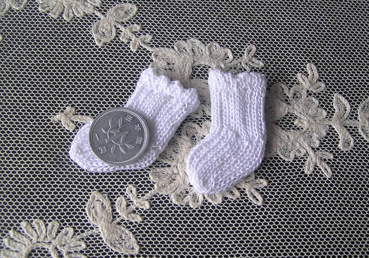 手編みのコットン(100%)糸の小さなソックスで、未使用の状態です。
