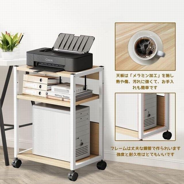 プリンターワゴン CPUワゴン プリンタラック 3層  PCワゴン 多機能収納 収納ラック オフィス収納ラック キャスター付キ ホワイト