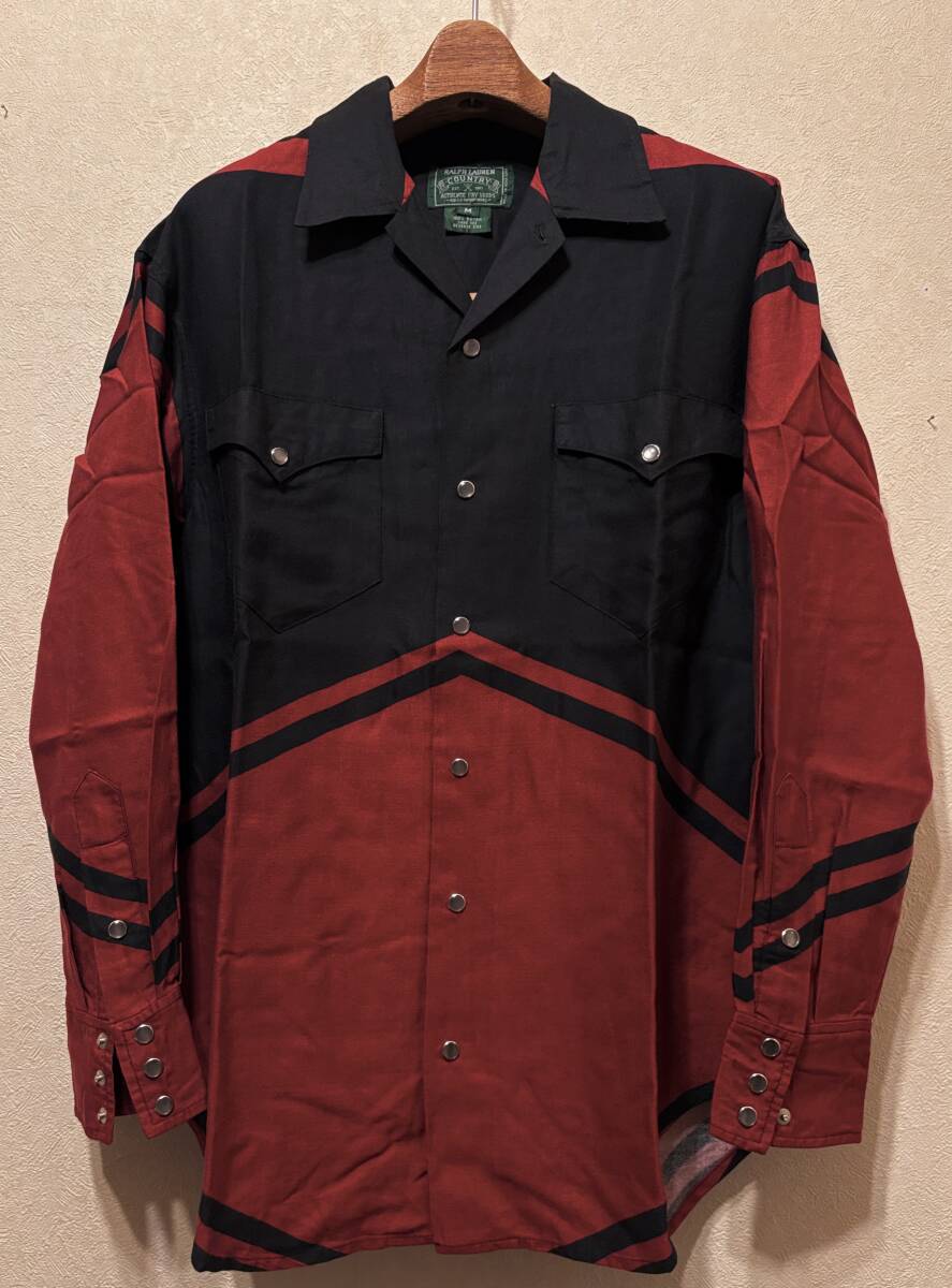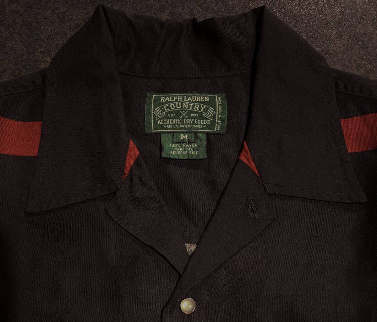 希少レーヨン美品90sオールドRALPH LAUREN COUNTRYウエスタン柄シャツMオープンカラー黒/赤レア色90年代ポロカントリーPoloビンテージ (rrl