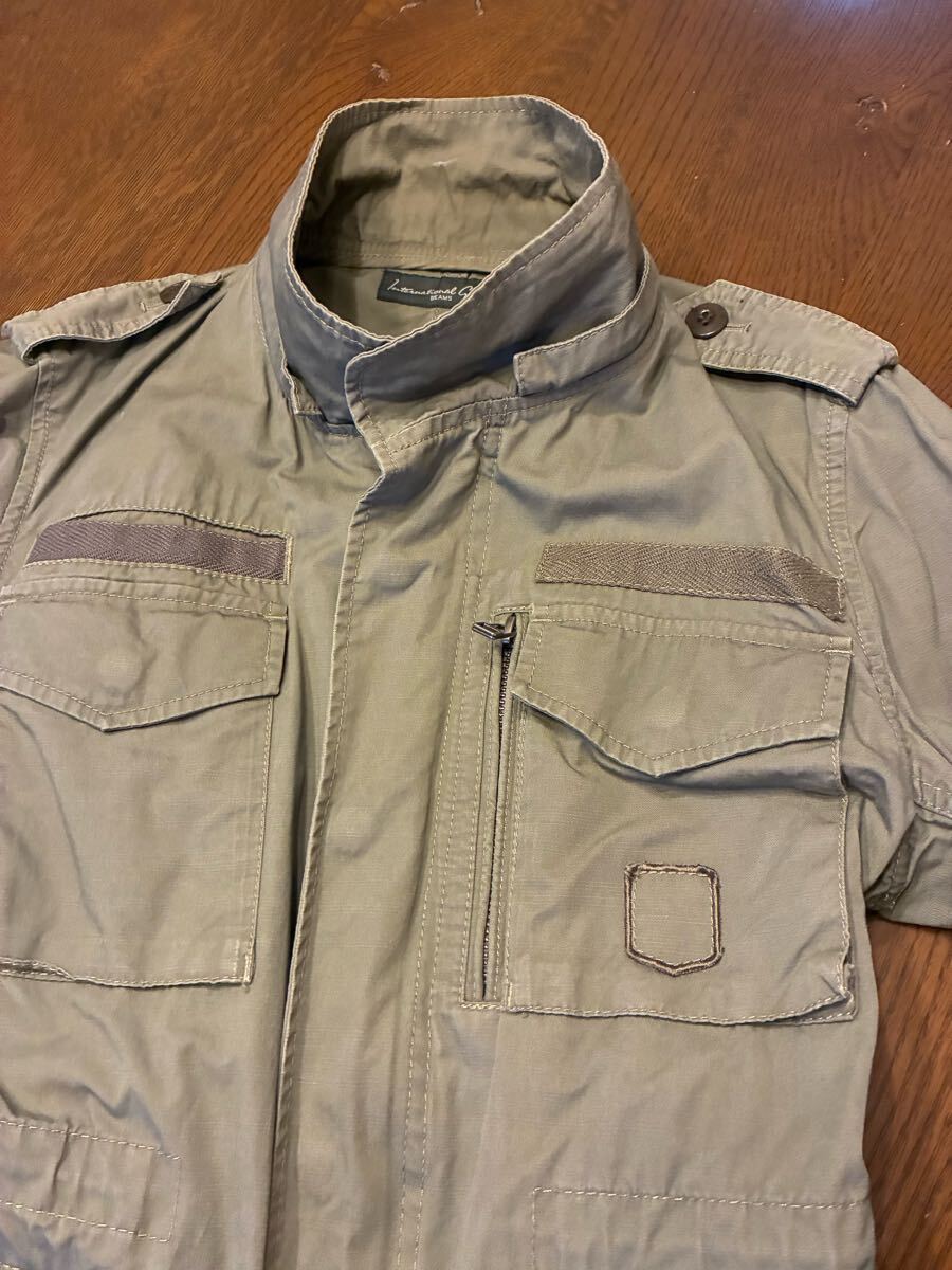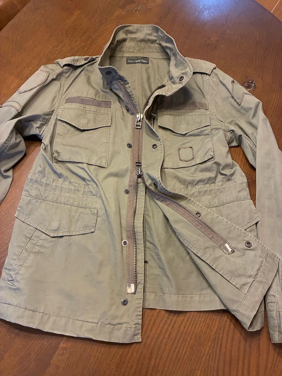 スッキリしたシルエットで、ミリタリーテイストなので生地も薄いので今の季節に丁度です。ダブルジッパーで、内側からウエストが絞れます。