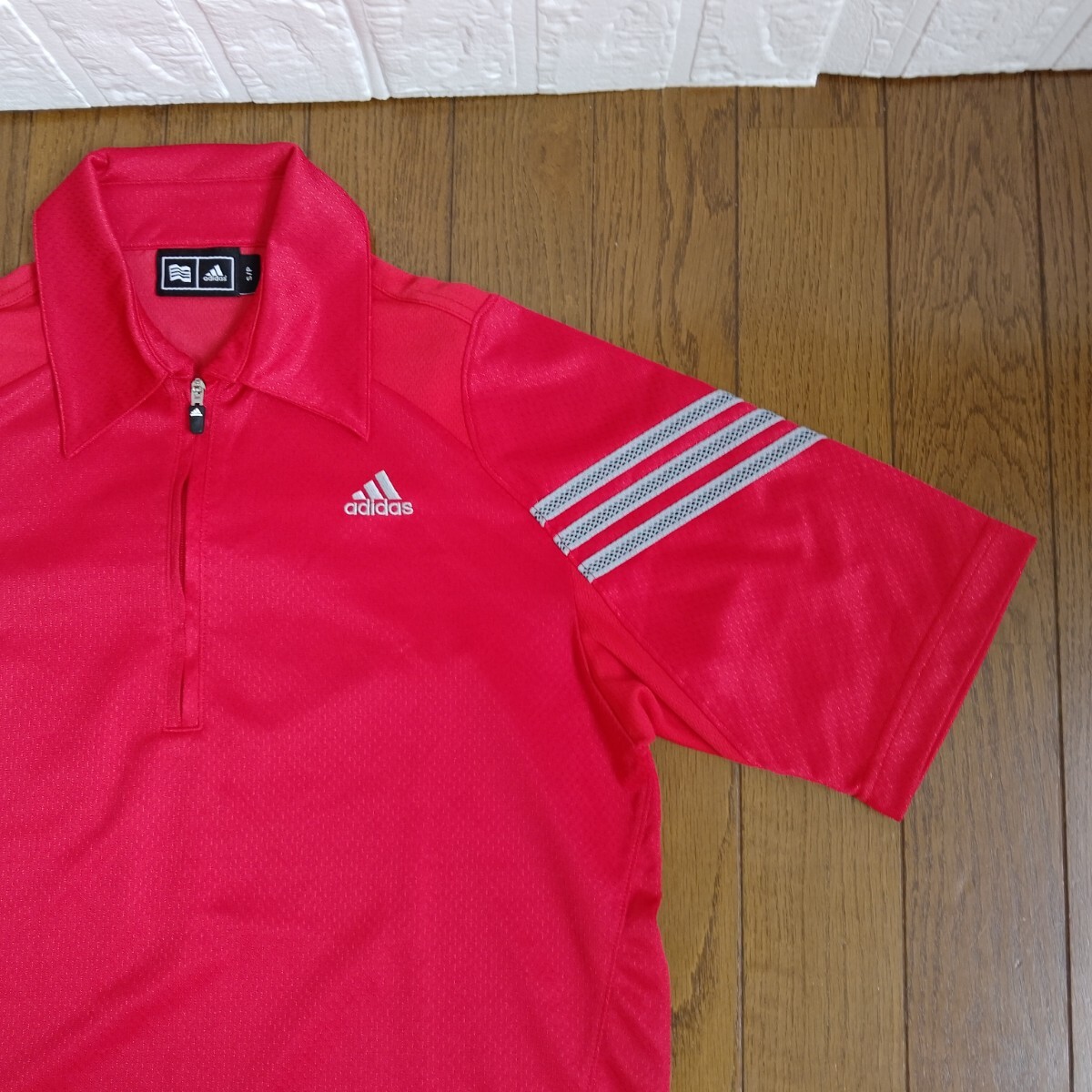 2240【中古】adidas golf アディダスゴルフ ゴルフウェア 半袖ハーフジップシャツ メンズサイズ S/P 赤