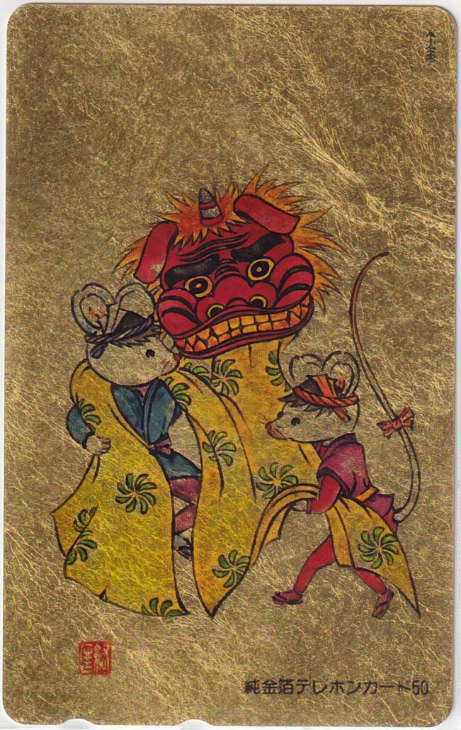=子 鼠= 「純金箔〜カラー縦」販売テレカ #w