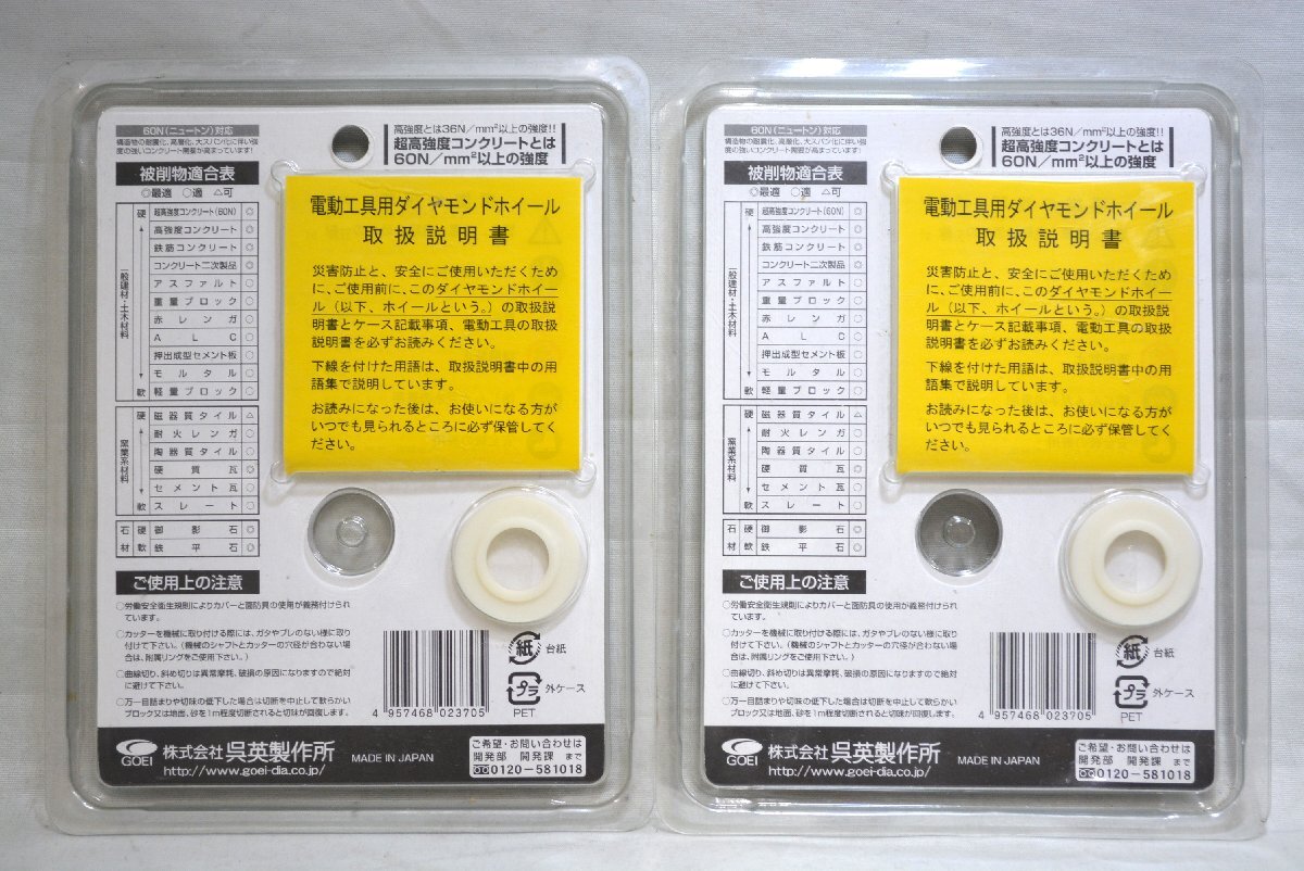 呉英製作所 GOEI ダイヤモンドホイール キレイチ60 2370 8mmチップ 2枚の出品です。 状態は、未使用品となります。 未使用品ですが、長期保管によるパッケージ傷み・汚れがございます。 ---〈必ずお読みください〉---※いたずら入札・落札キャンセルが絶えません。落札後のキャンセルは 「悪い」の評価を付けさせていただきます。よくご検討の上、ご入札ください ※領収書の発行は行っておりません。振込の取引明細や代引伝票の控えをご利用ください。 ※新品・未使用品は、買取品の為メーカー保証が受けられるかは不明です(メーカーの判断となります)。 ※値段の交渉についてのご質問にはお答えいたしません。 ※商品の使用方法、取扱いについては当店では分からないため、メーカーに直接お問合せください。 ※営業時間外(10時~19時以外)のご質問・お問合せについては対応できません(木曜日店休) |