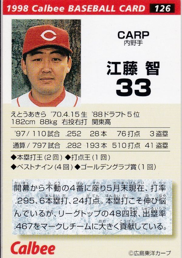 ●1998カルビー 【江藤 智】 BASEBALL CARD No.126:広島