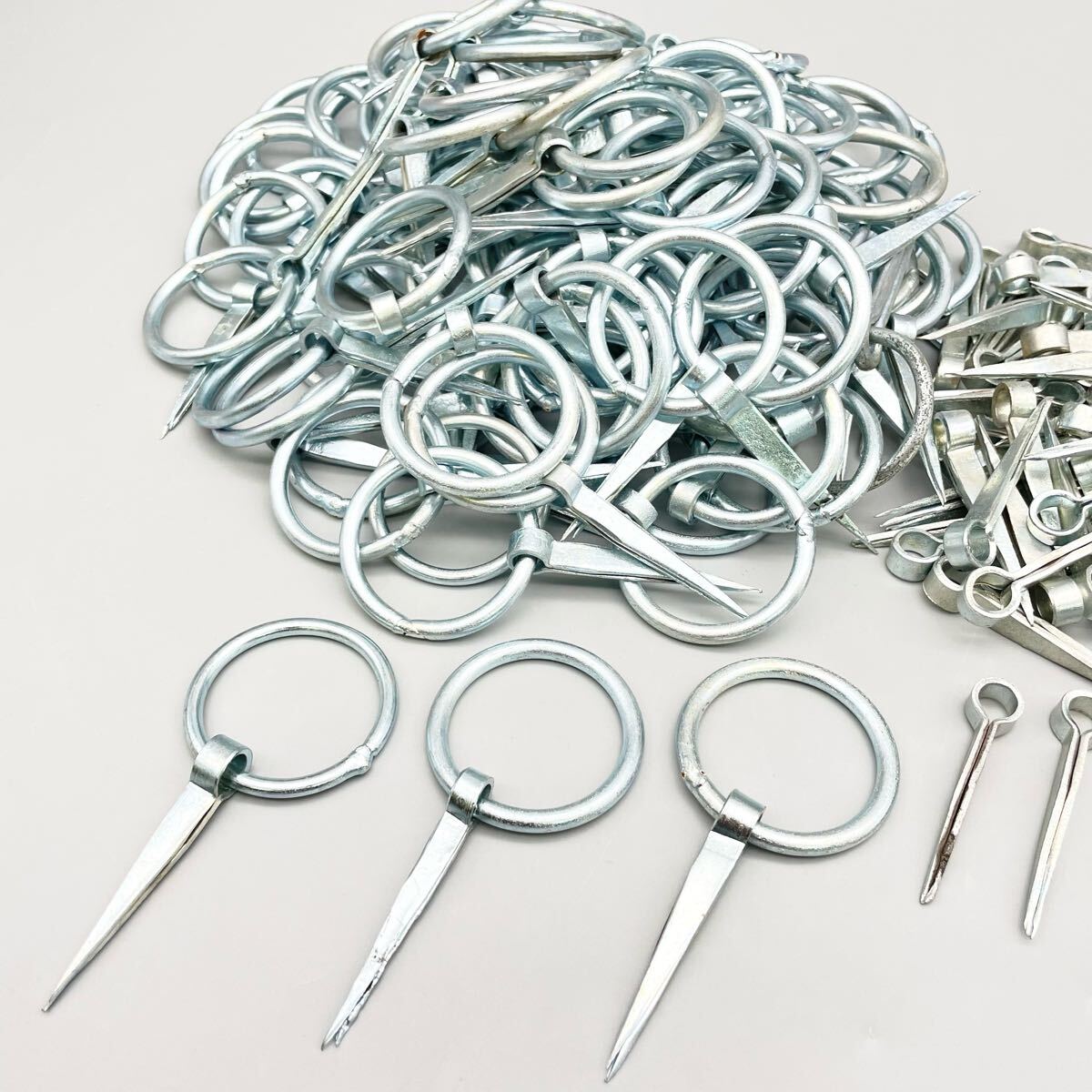 [新品 未使用] 打ち込み式 丸掛金 割りピン 掛け金具 外径45mm 200個 丸カンボルト 太口 壁面 柱 ロープ ワイヤー通し 金物屋 在庫 まとめ
