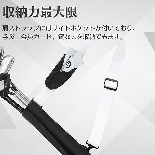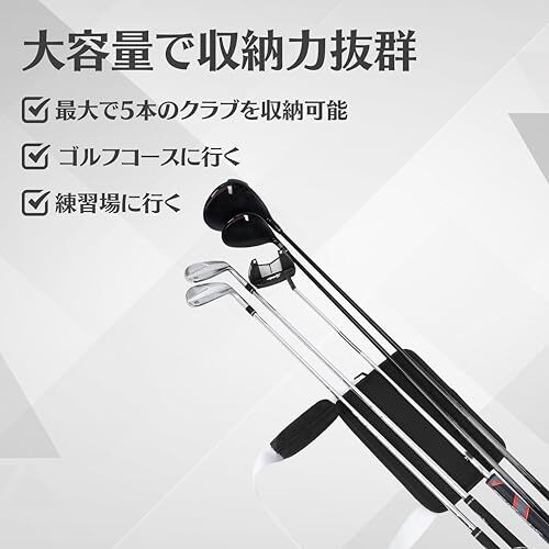 【大容量で収納力も抜群】軽量ながら、5本のゴルフクラブを収納できます。練習場やゴルフコースでも必要なクラブをしっかり収納できます。