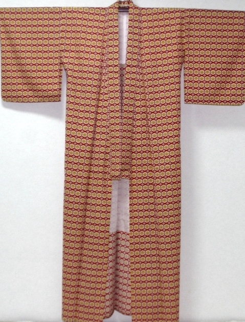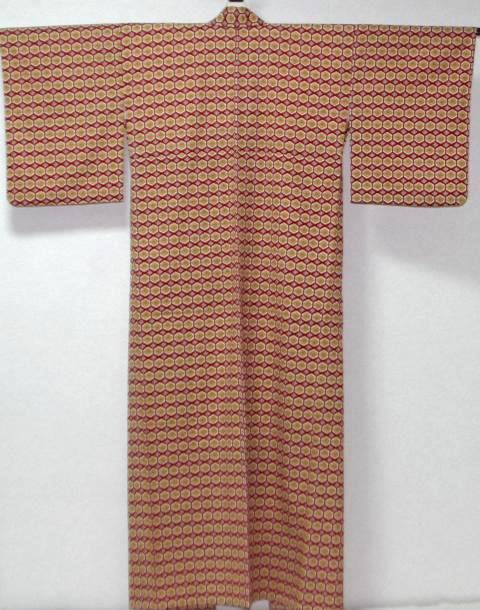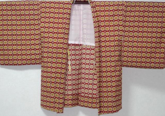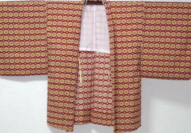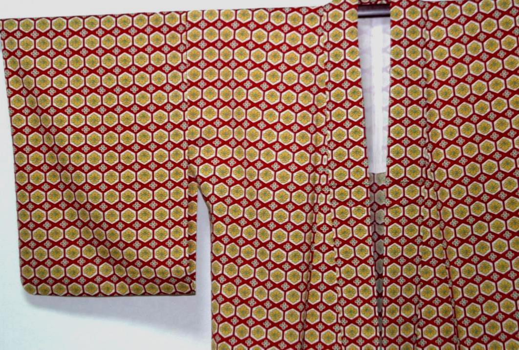 ウール・亀甲柄のアンサンブル ウール100% (羽織の左後ろに小さい虫食いがあります。4枚目写真) およそのサイズ 着丈 156.5cm 裄 65cm 袖巾 33cm 袖丈 49.5cm 前巾 24cm 衿巾 14.5cm サイズをお確かめください。 保管期間が長い為のしわはあるかと思います。 写真による色合いは、多少ちがいます。 ご理解のある方にお願いします。
