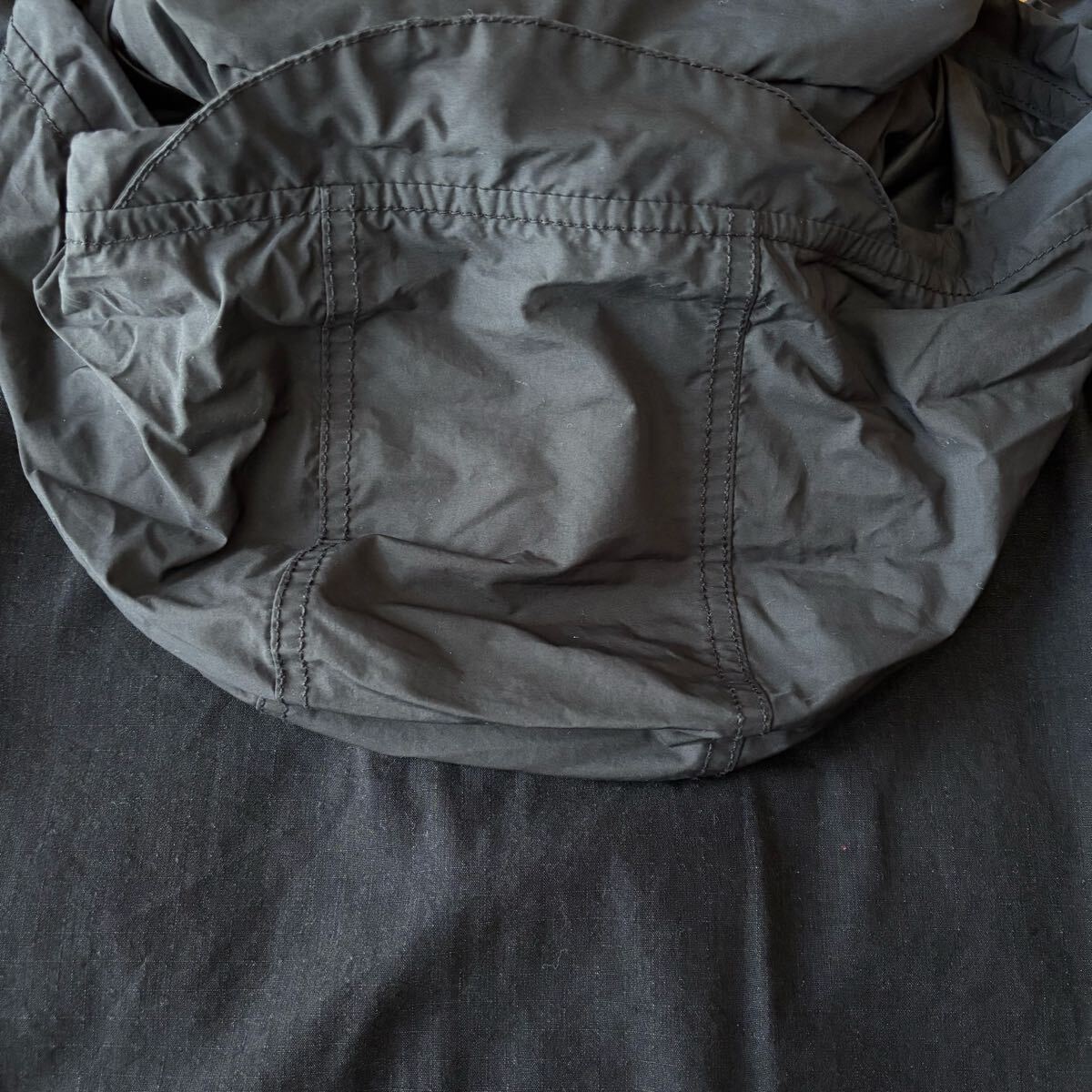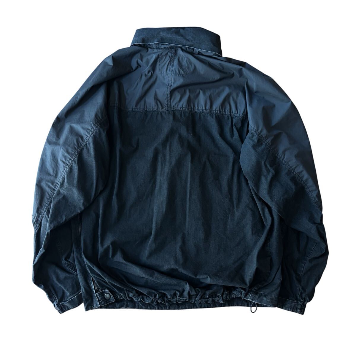 素材には経糸にコットン、緯糸にナイロンを使用した、リップストップクロスを使用。インディゴの風合いに洗い加工を施しヴィンテージのような雰囲気を表現しています。