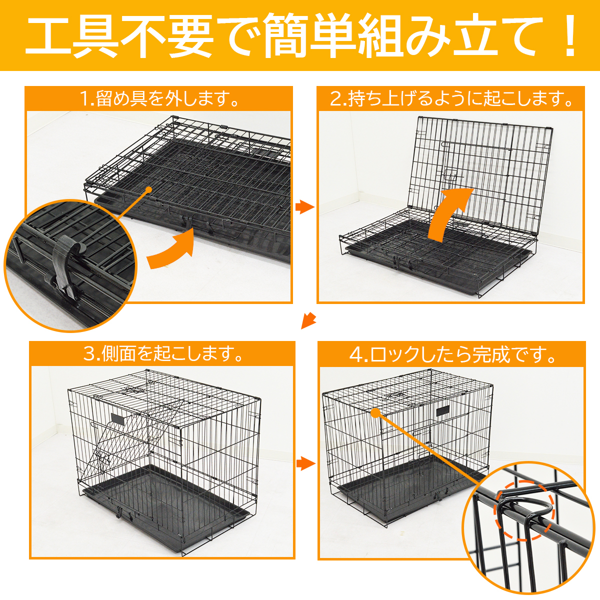 横76cm 奥48cm 小型犬 /中型犬 ペットケージ 折りたたみ トレー付き チワワ 柴犬 ペット ハウス サークル ゲージ 犬 猫 小屋