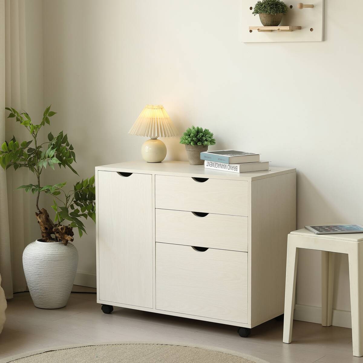 キャビネット幅80 北欧 サイドボード チェスト キャスター付き 引き出し 3段 ワゴン タンス 扉付き 大容量 押入れ収納 棚 スリム テレビ台