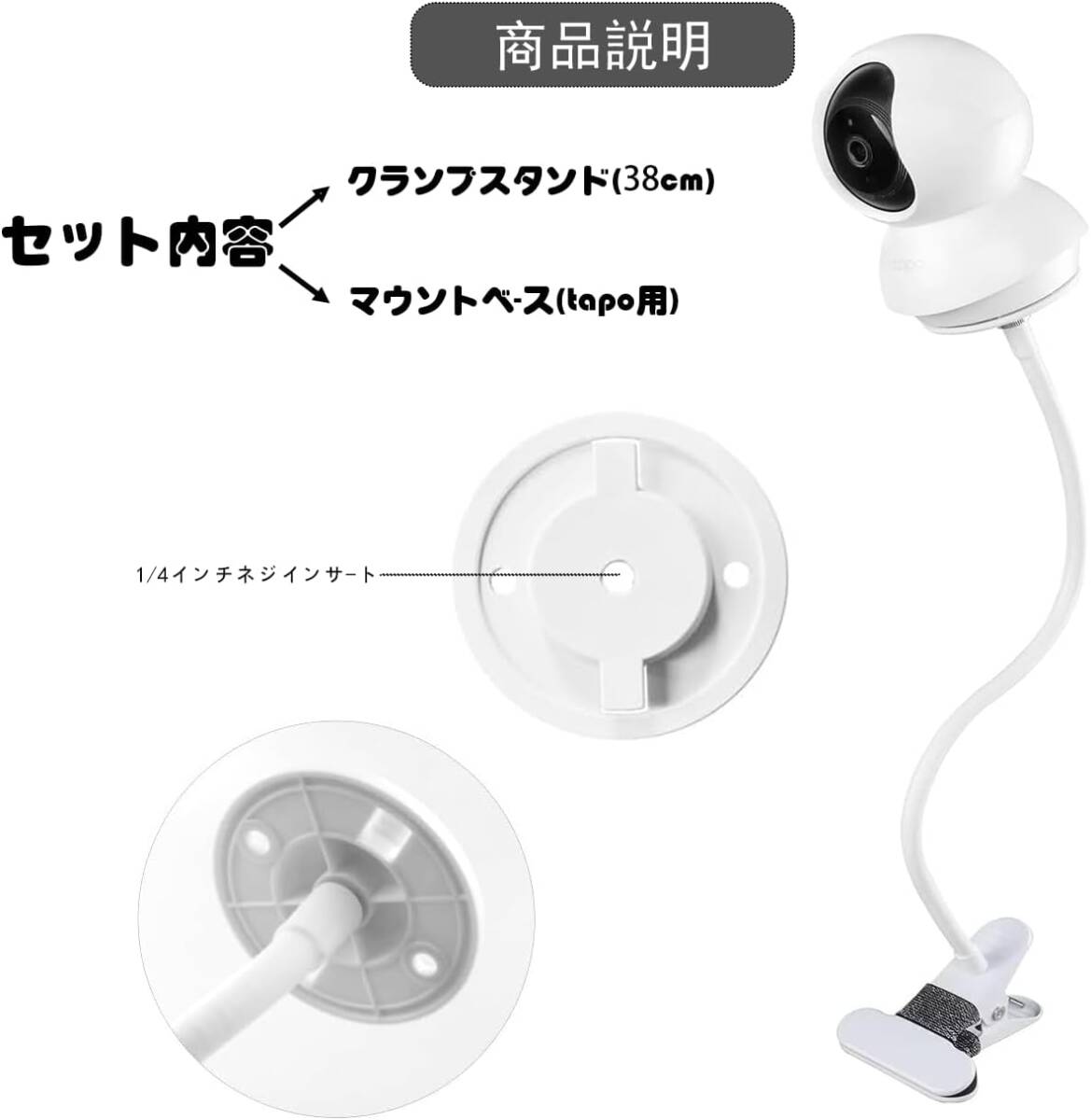 クラソプマウソト、マウントベ一ス。TP-Link Tapo向けフレキシブルマウント。TP-Link | Tapo C200、C210、C220カメラに対応しています。