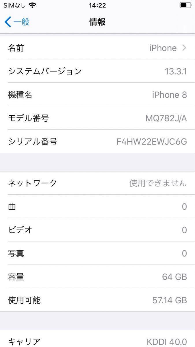 商品名:【1円スタート!動作確認済み!送料無料!】Apple アップル iPhone8 64GB SIMロック不明 A1906 MQ782J/A スペースグレイ/B091621-ネコポス
