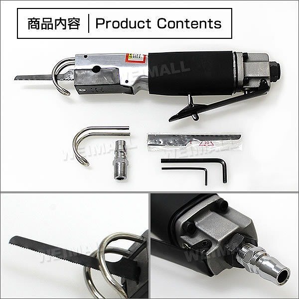木板やスチール、アルミニウム等の金属板 プラスチック、FRP等の切断、加工に! 【商品仕様】 ・エアーカプラ:1/4インチNPT ・レンジ:9-1/4インチ ・ストローク:3/8インチ ・往復数:9000/min ・サイズ(約):27cm×4×4cm 【商品内容】 ・本体 ・カプラ(1/4インチNPT) ・専用工具 ・刃2枚 ・英語版取扱説明書 【注意事項】 ※エアプラグを取り付ける際は必ず、シールテープを巻いてください。 ※使用毎に必ず、エアツールオイルを注入してください。 ※ご使用にはエアーコンプレッサーが必要になります。 ※写真と実物は多少異なる場合がございます。あらかじめご了承下さい。 |