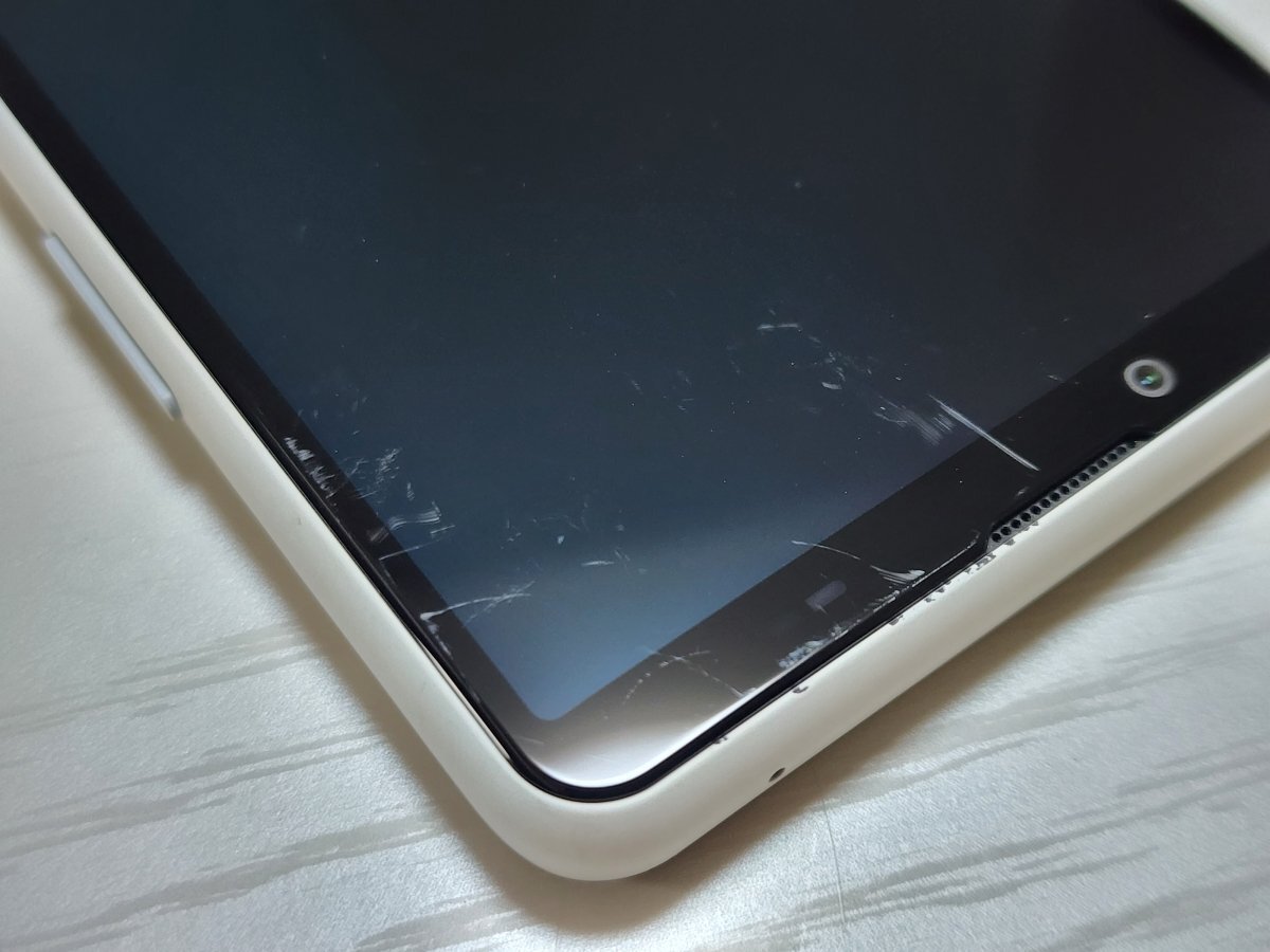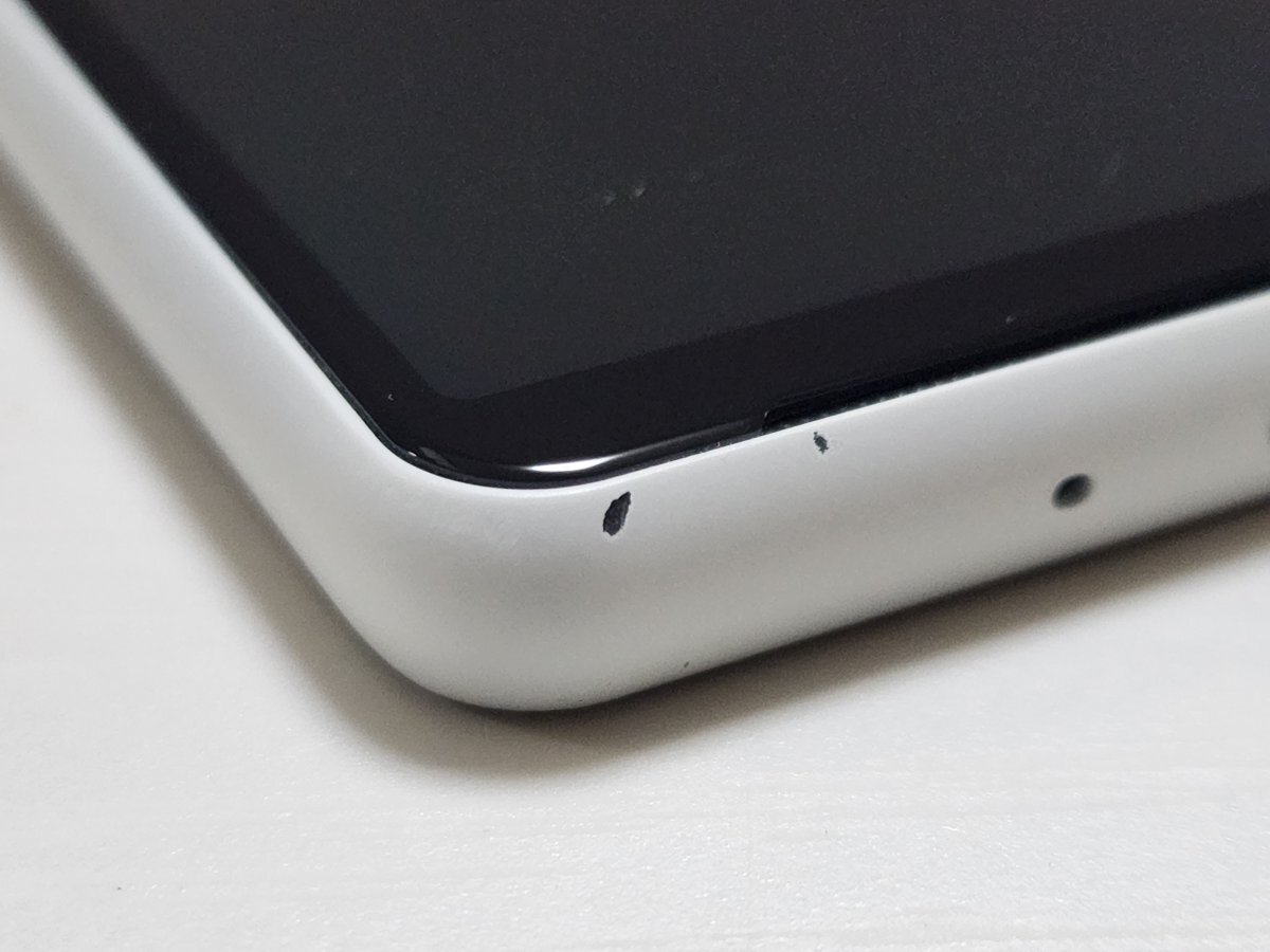 【外装状態】: C 画面には傷が多いです。側面には打痕や塗装剥げが目立ちます。背面にはカバー痕が少しついています。機能面は、画面に焼付きがあります。