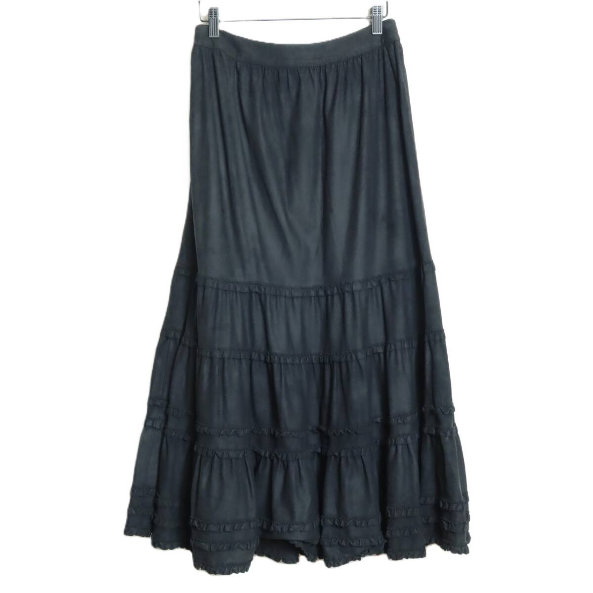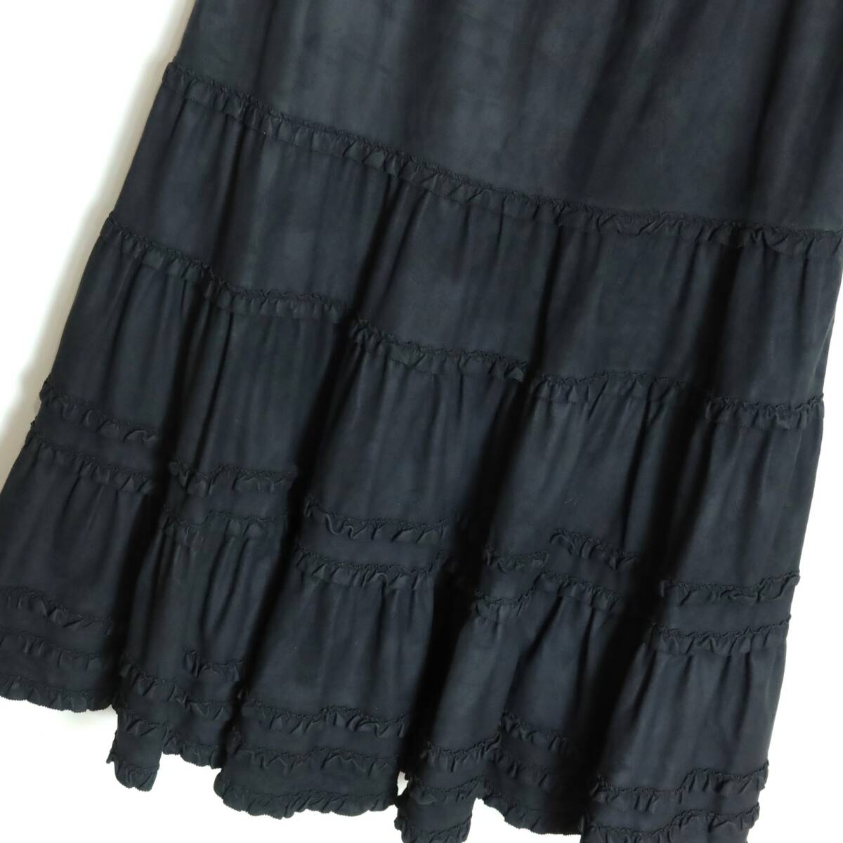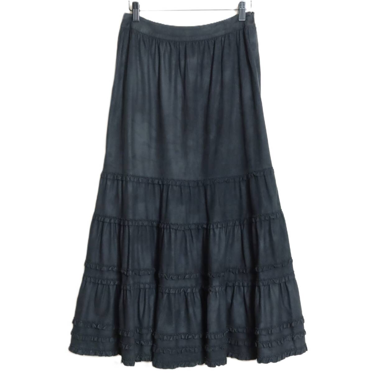商品説明 | 【実寸約】ウエスト70~丈85(cm) 【サイズ表記】 サイズM 【素材】 ナイロン60ポリウレタン40% 【状態】 普通の使用感のあるお品物 【デザイン】黒系 スウェード調がすてきなロングスカートです。 ティアードデザインでギャザーたっぷり♪ 段々フリルがキュート! これ一枚でもレイヤードでもロマンティックコーデに大活躍するアイテムです。 薄手/無地/ペチコート付き |