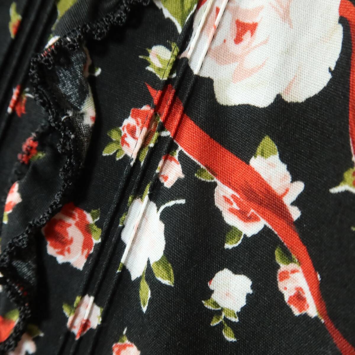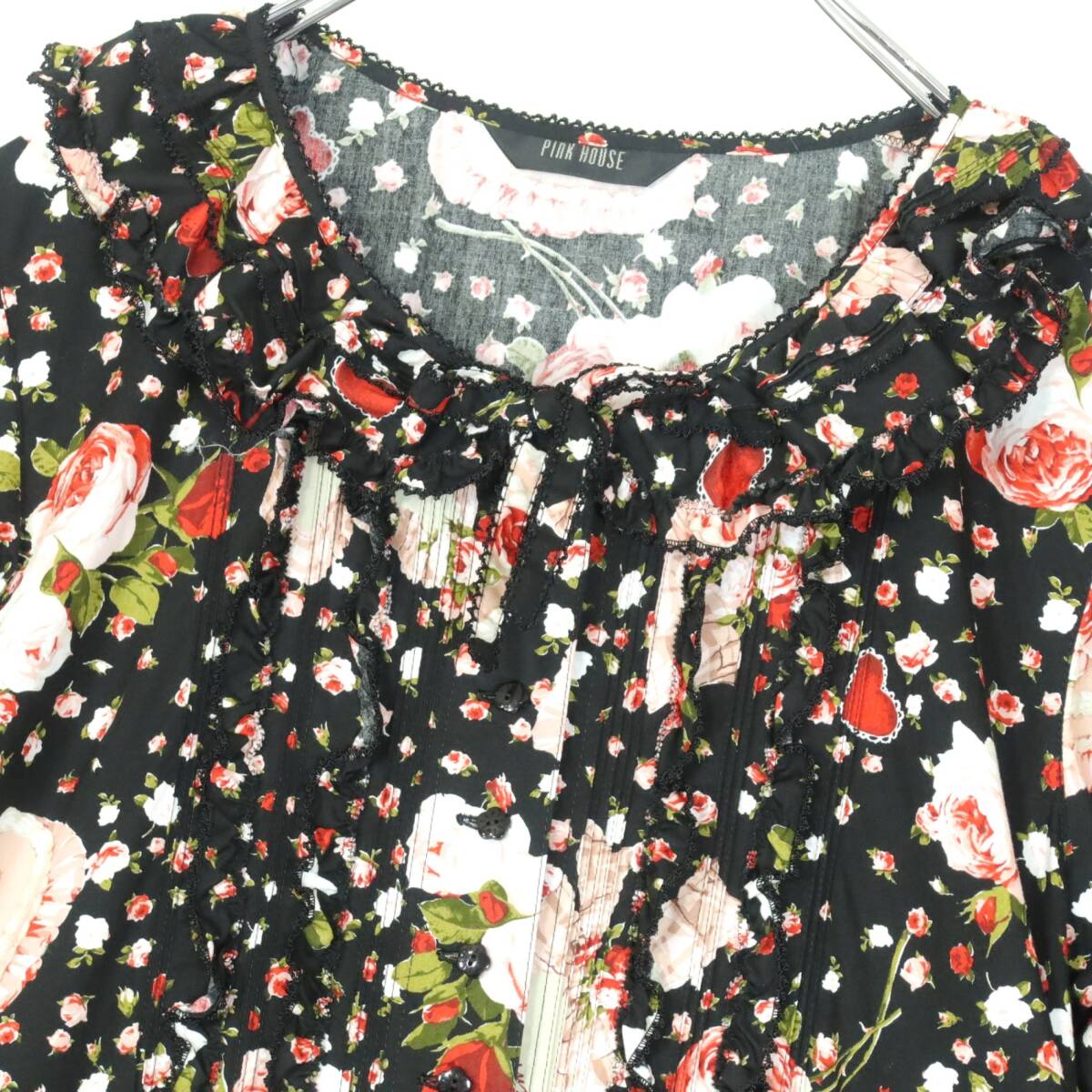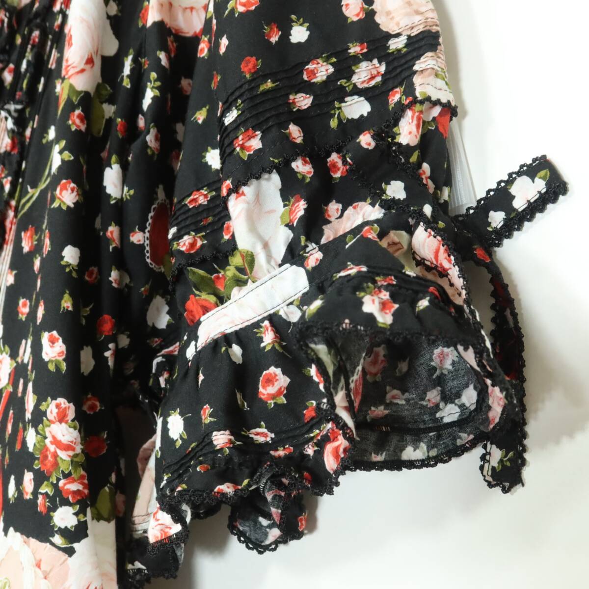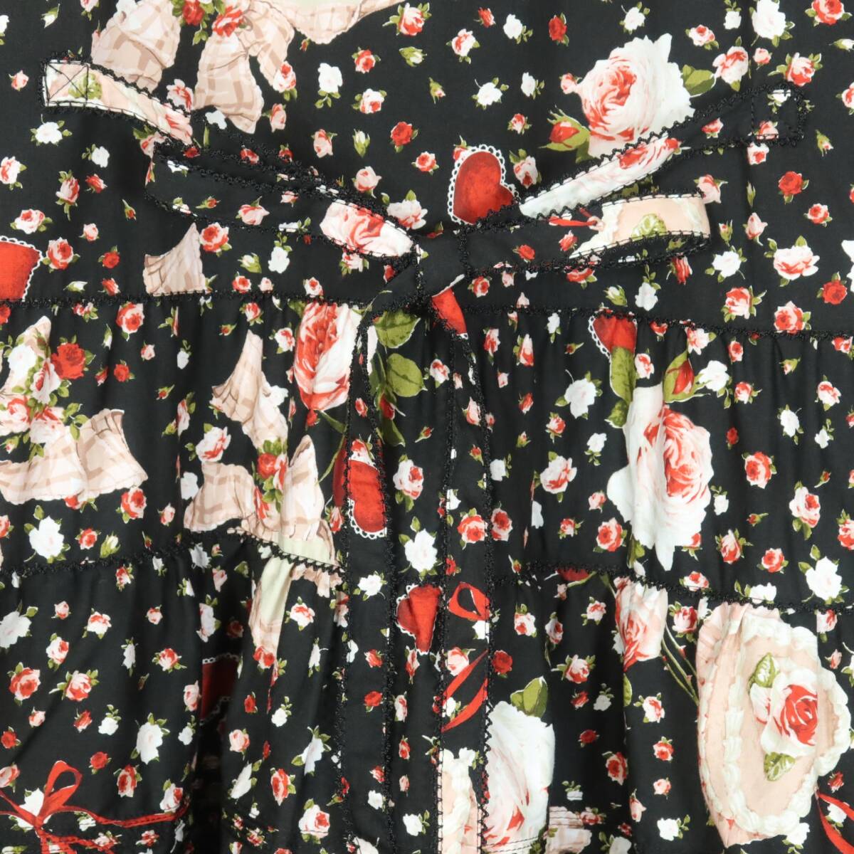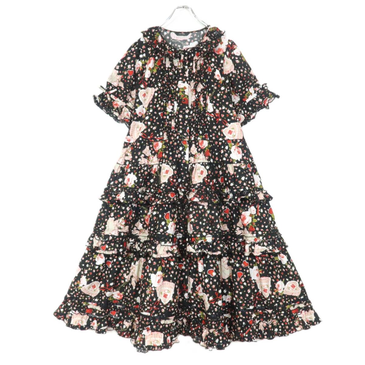 商品説明 | 【実寸約】裄丈39バスト100着丈130(cm) 【サイズ表記】 なし。実寸をご参照くださいませ。 【素材】 綿100% 【状態】 使用感少なめの美品 【デザイン】黒系 2023年早春カタログ掲載のお色違い商品。 商品名「オーナメントローズ柄半袖ワンピース 」 ふんわりフォルムが大人可愛い綿ローンの半袖ワンピースです。 ハートとローズの総柄がキュート! スカートはゴージャスなかぶせ段々フリル♪ 裾にははしごレース&サテンリボンも♪ フリル襟やピンタック、ピコレース、共布リボン、ピコフリルなど、ピンクハウス定番の飾りがギュッと詰まった一枚です。 フロントは上から下まで梅のボタンで開くデザイン。 これ一枚でもレイヤードでもロマンティックコーデに大活躍する優秀アイテム! 薄手/ |