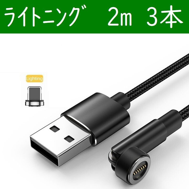 ライトニング2m黒色3本曲るマグネット磁石式USB充電通信ケーブル iPhone