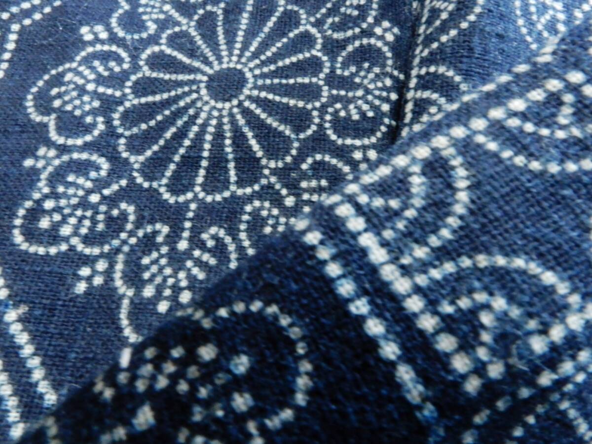 <銀の斧>明治期・藍型染1巾・点描型染・リメイク用