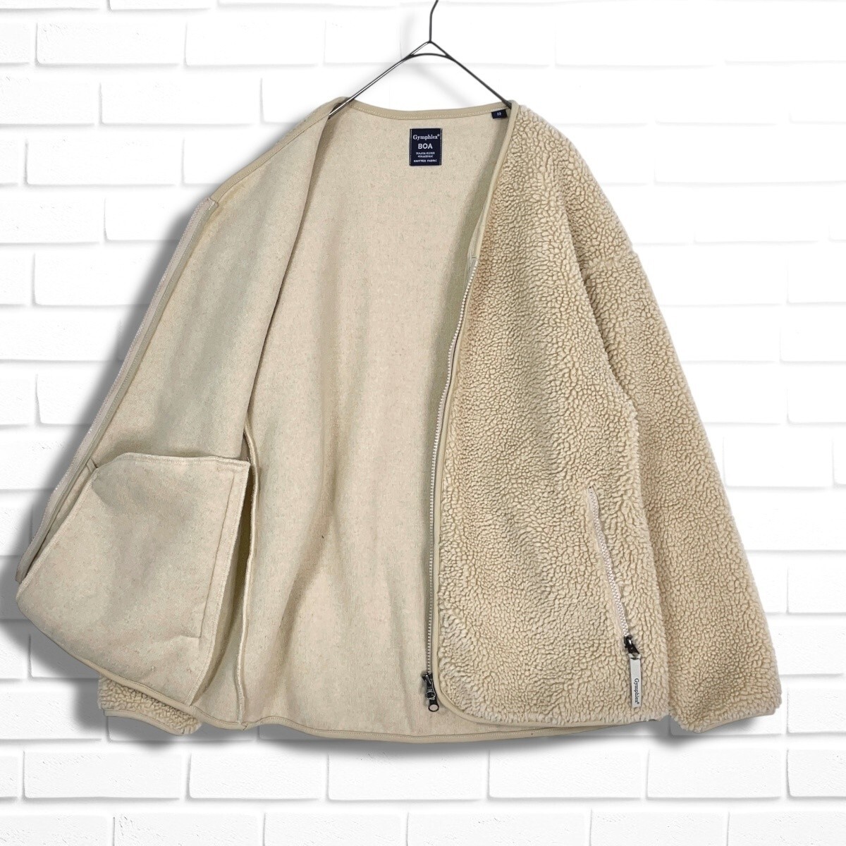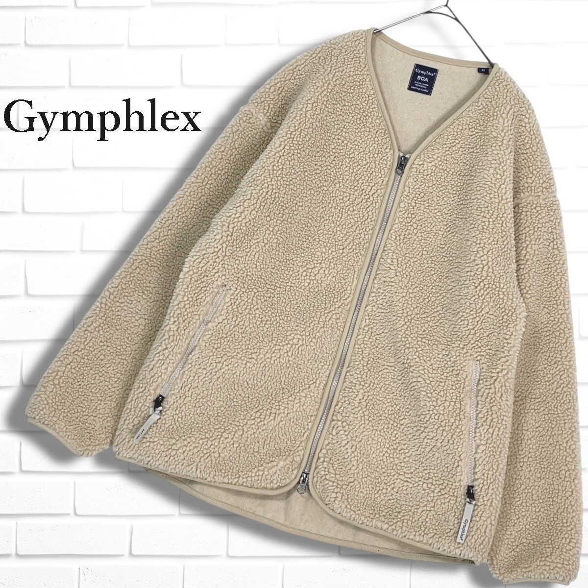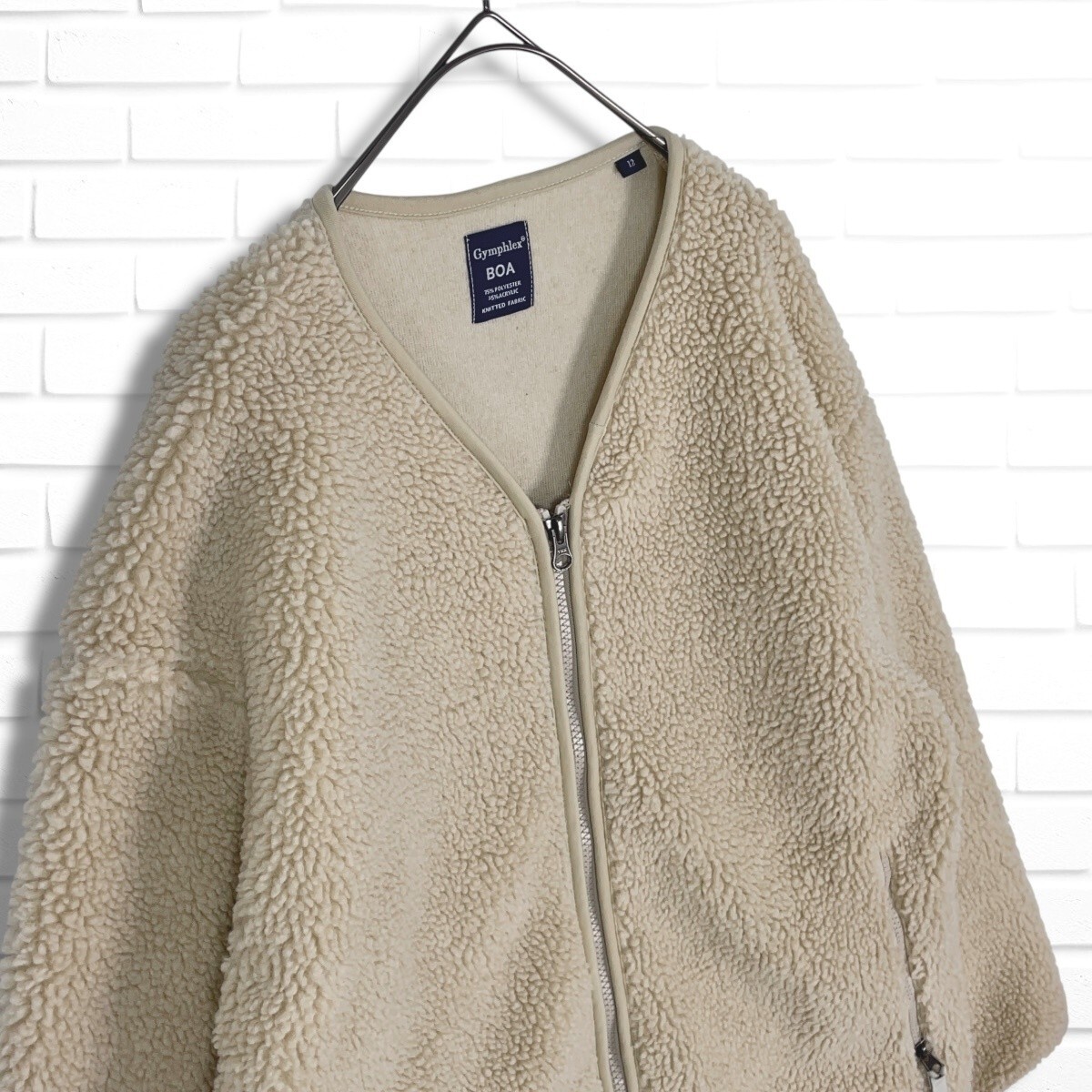 ◆美品◆ Gymphlex ジムフレックス ノーカラー BOA ボア ジャケット ブルゾン アイボリー系 レディース 12 ◆送料無料◆ 2825I◇