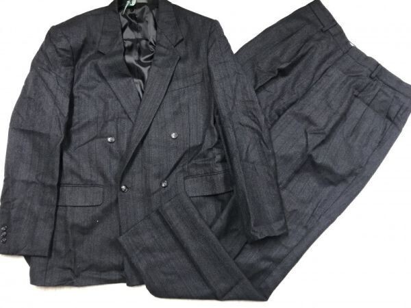 Gibo レトロ オールド トラッド 古着 ジャガード 総裏地 ノーベント ダブル スーツ 上下セットアップ メンズ 52 チャコールグレーです。