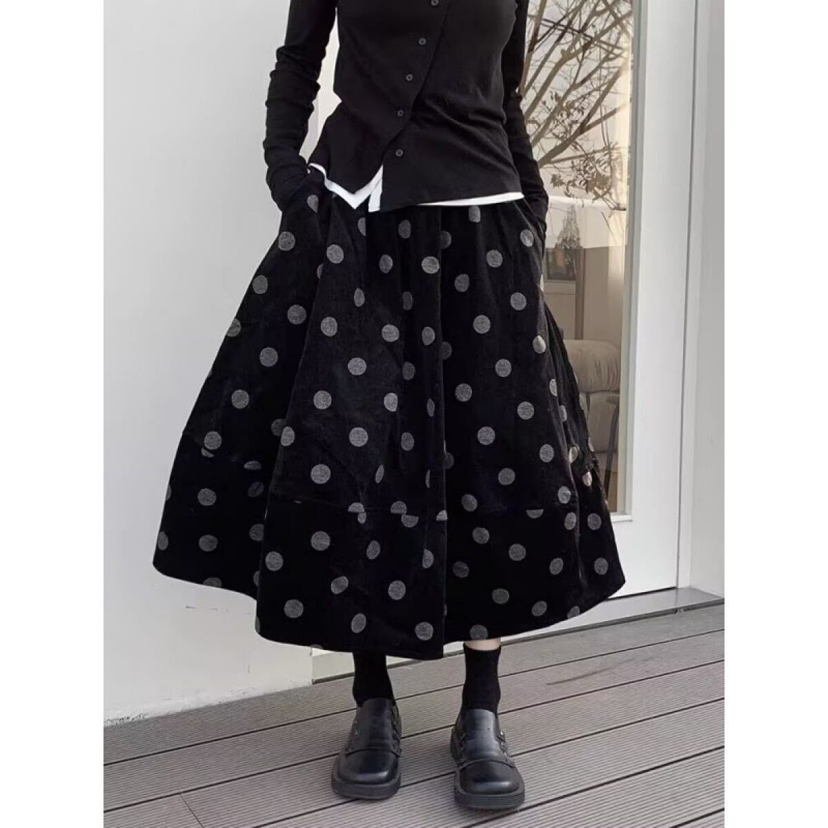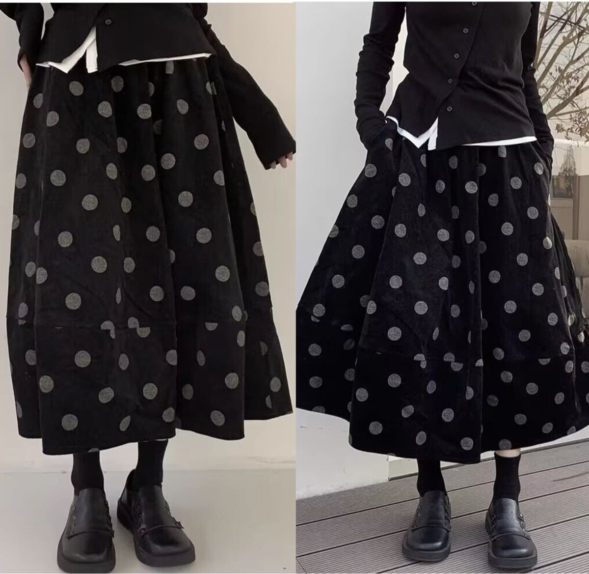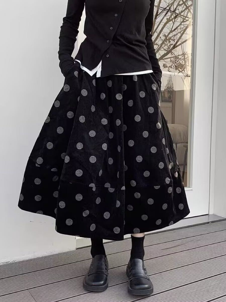 コーデュロイドット柄スカート