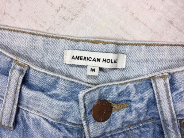 アメリカンホリック AMERICAN HOLIC 韓国ファッション ハイウエスト デニムパンツ ジーンズ ボトムス レディース ジップフライ M 青で す。