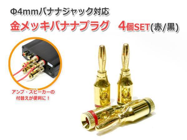 Φ4mm対応 金メッキバナナプラグ 赤黒4個セット
