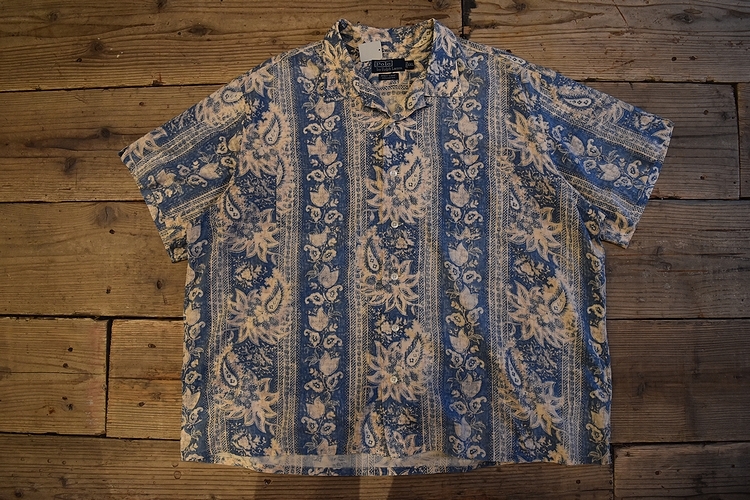 90年代頃の、Ralph Lauren半袖ANDY CAMP開襟総柄シャツになります。