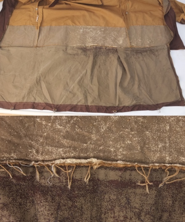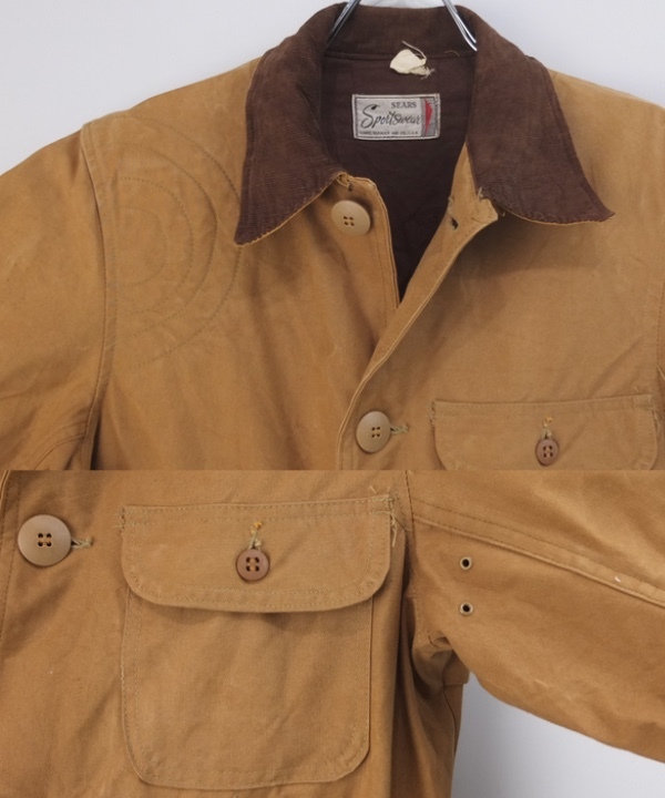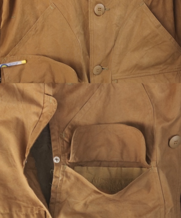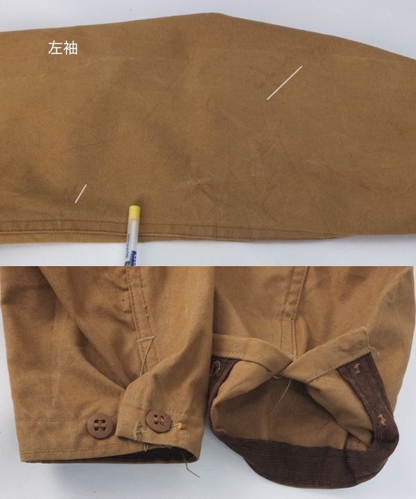 左袖ひじ前側に少し擦れ、シミぐらいで、ハンティングジャケットとしては、シミ、汚れ少ない方です。生地も退色少なく色濃い目です。