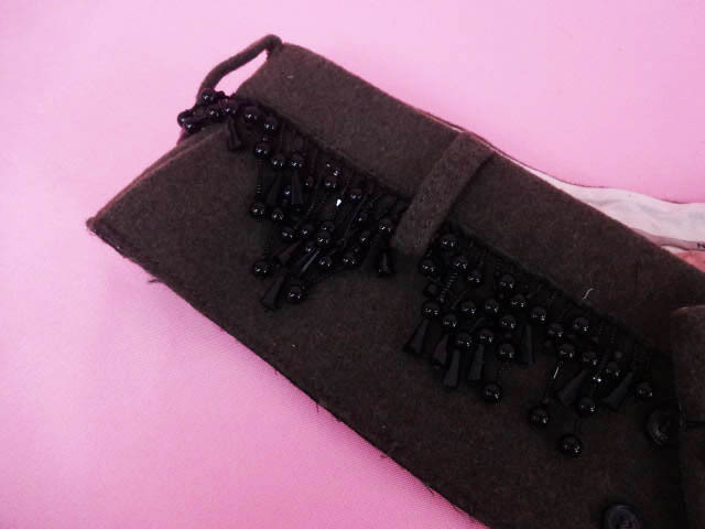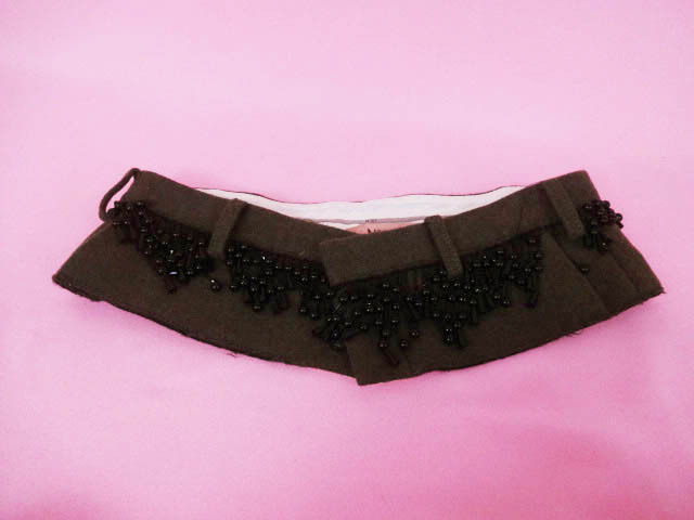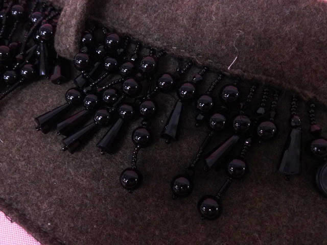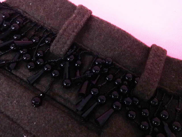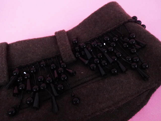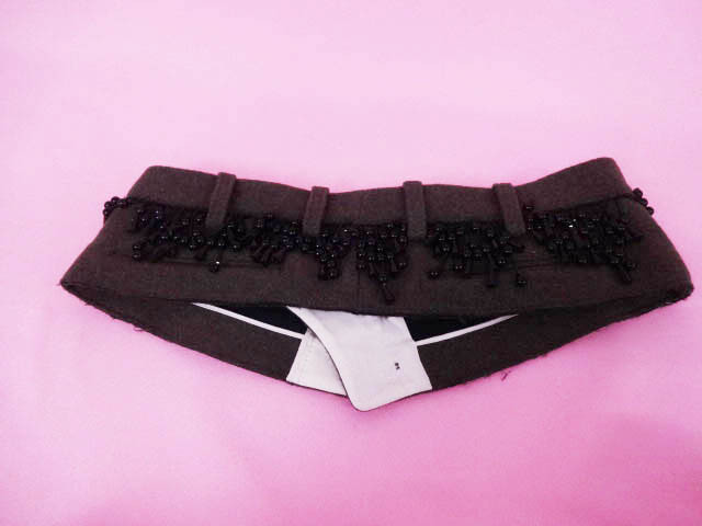温かみのあるウール素材を用いたカマーベルトで、ブラックのビーズがタッセル用にデコレーションされております。
