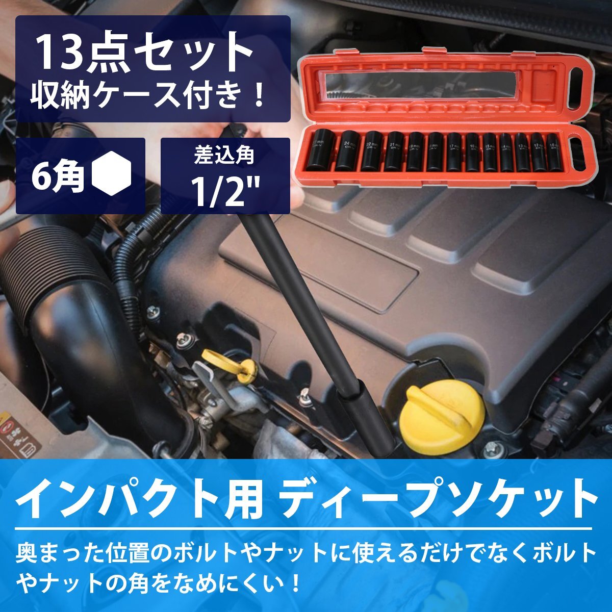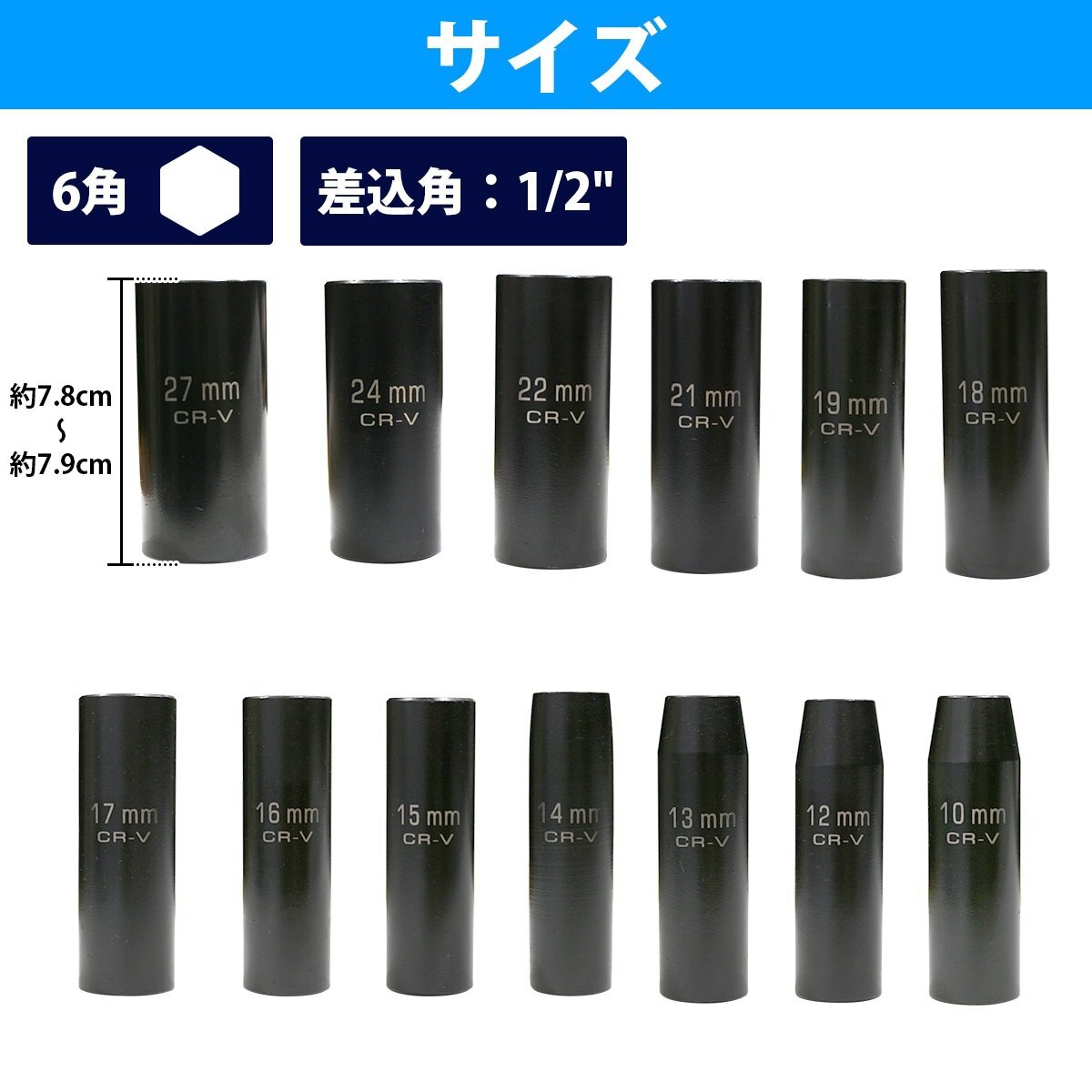 【新品即納】 13種 13本 セット ディープインパクト ソケット 6角 差込角 12.7mm 1/2インチ ディープ ロング インパクトレンチ 12.7 sq