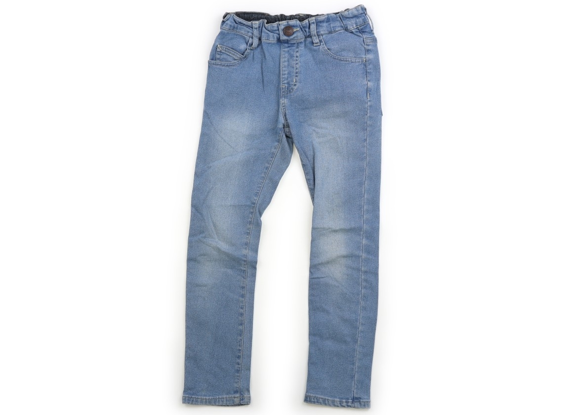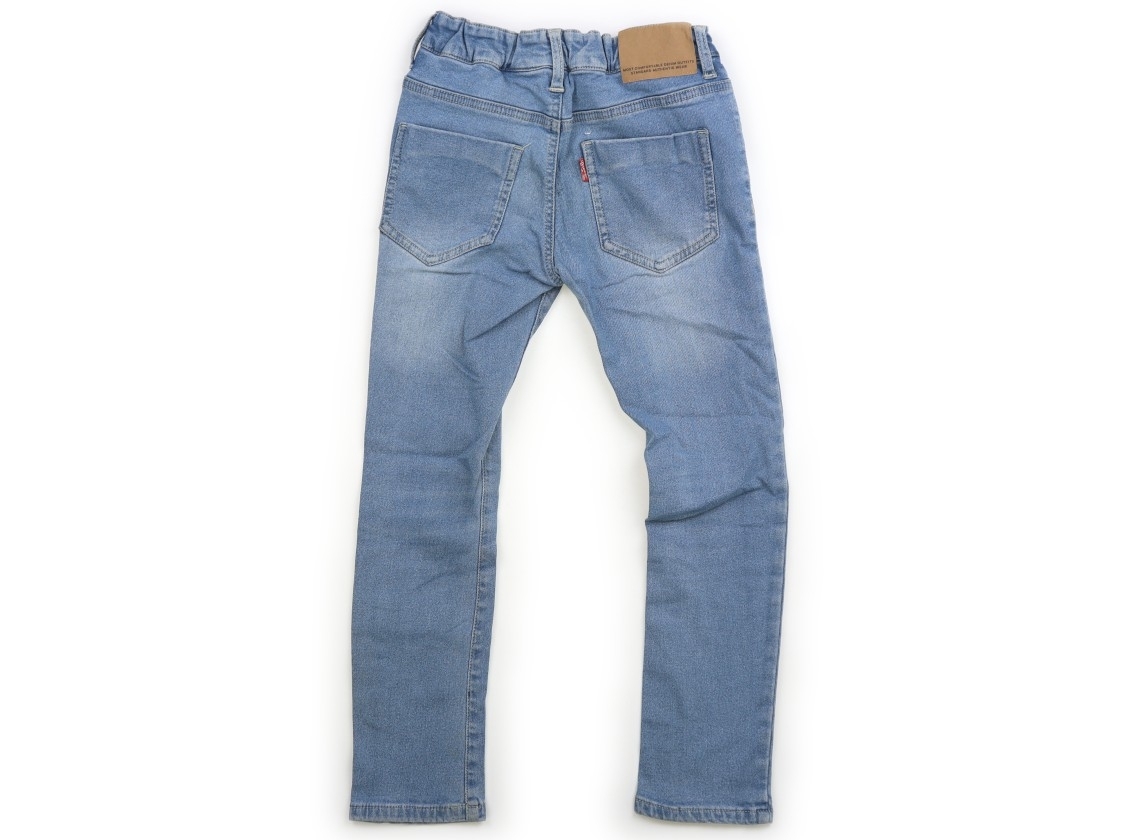 ストレッチデニム。ウエストのゴムは交換穴があります。デニム地特有のユーズド感がありますが、まだお使いいただけそうです。