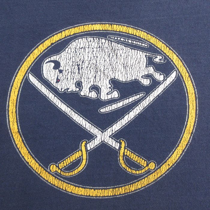 【商品名】 XL★古着 長袖 Tシャツ メンズ NHL バッファローセイバーズ 大きいサイズ コットン クルーネック 紺 アイスホッケー