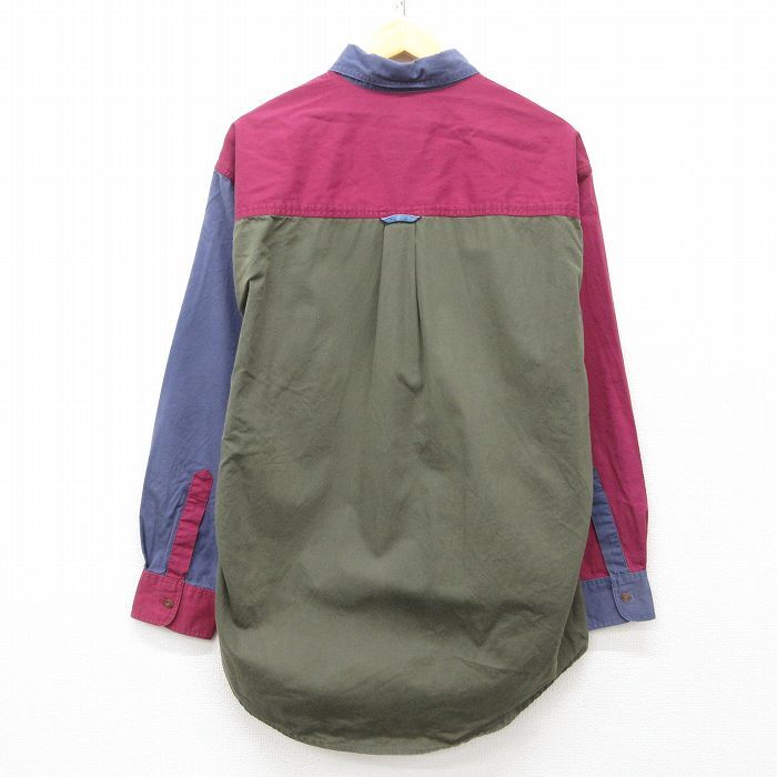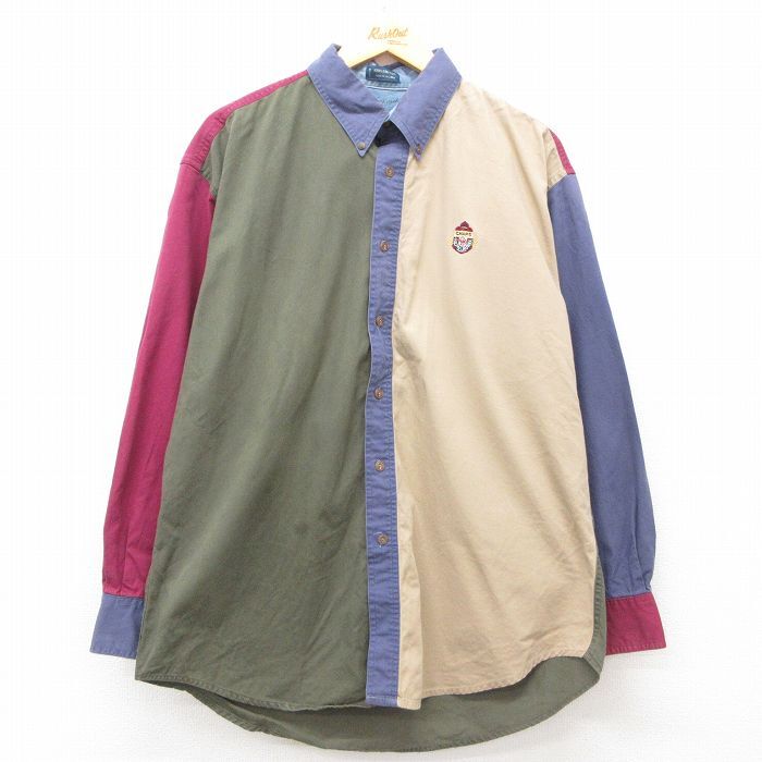 【商品名】 XL★古着 ラルフローレン チャップス 長袖 ブランド シャツ メンズ 80年代 80s マルチカラー クレイジーパターン 大きいサイズ ロング丈 コットン ボタンダウン 緑他【spe】
